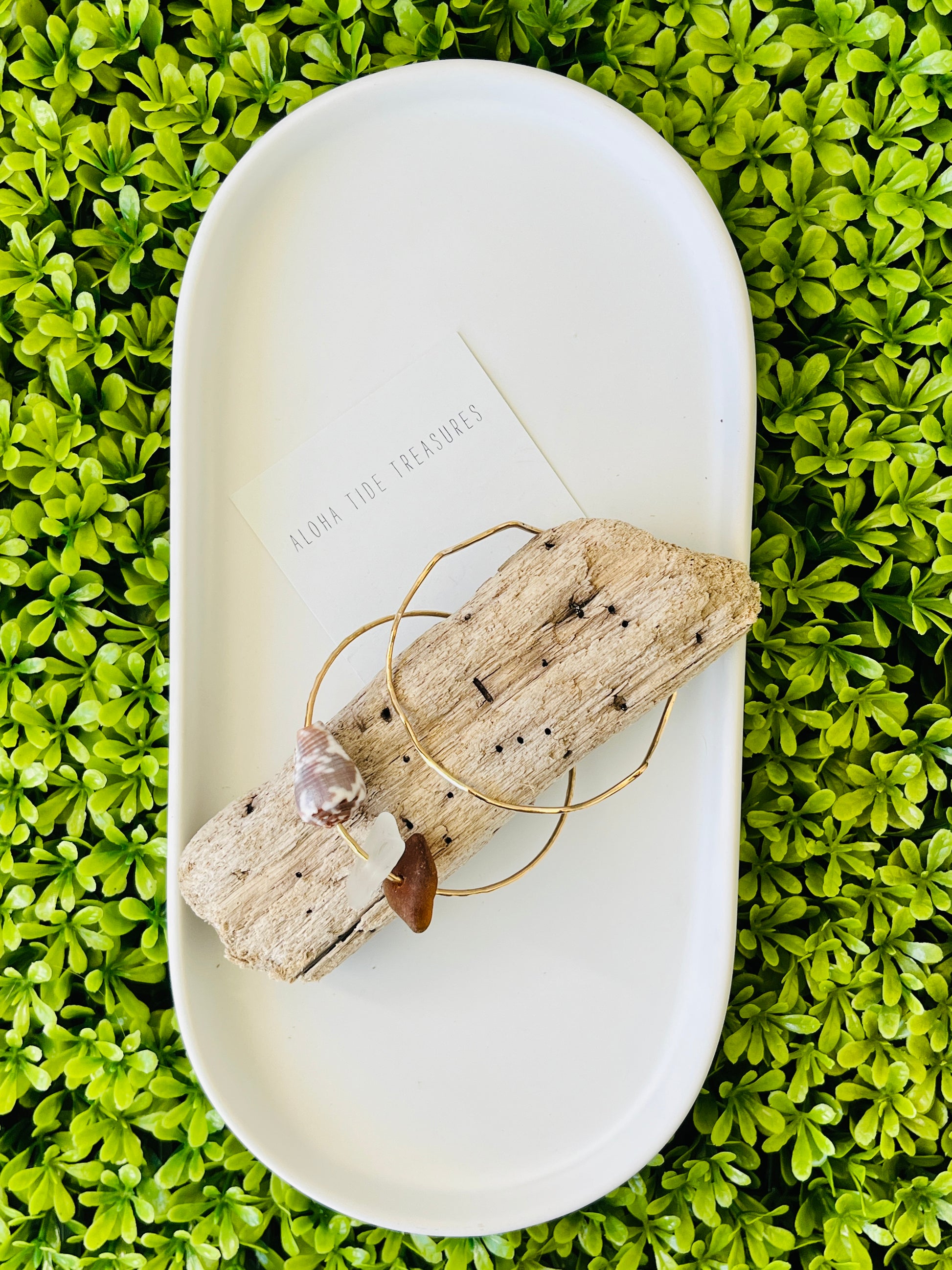 14K Gold-filled bangle features beautiful Hawaiian shells and sea glass found on the island of Oahu, Hawaii.