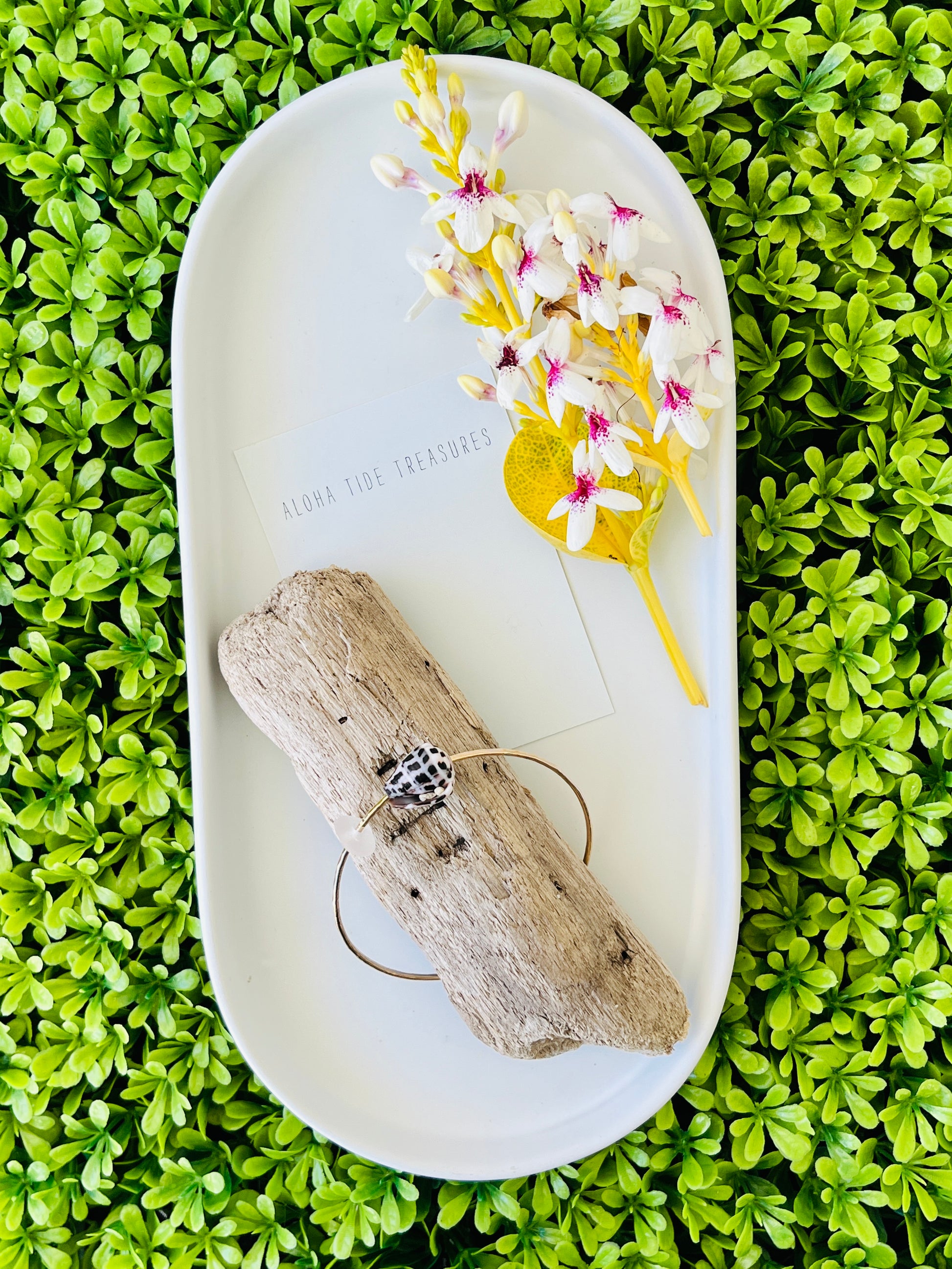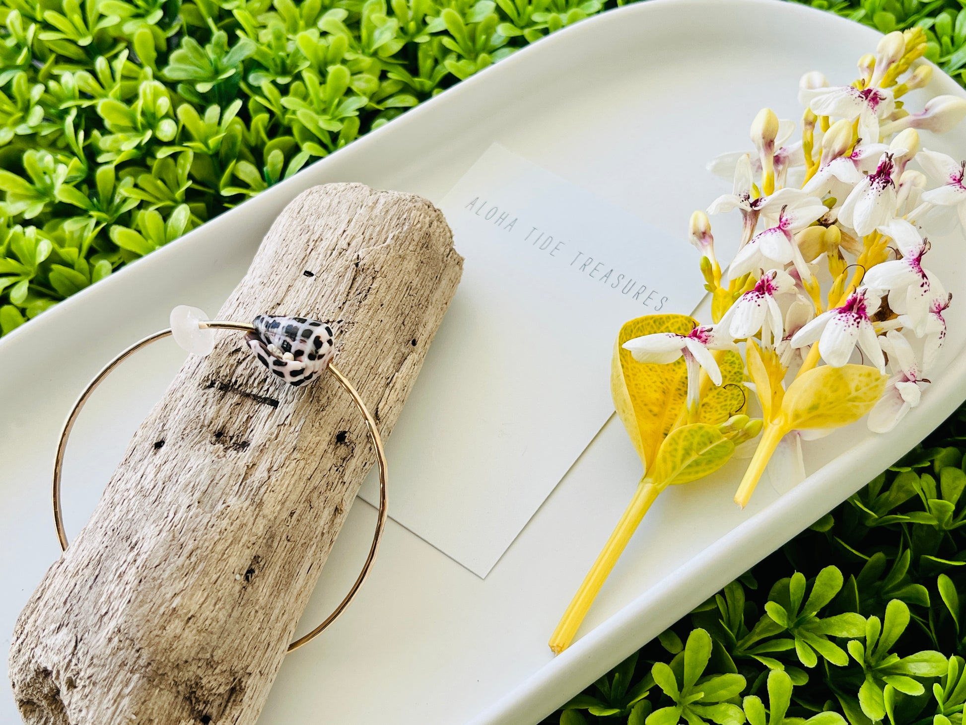 This handmade 14K Gold-filled bangle features beautiful Hawaiian shells and sea glass handpicked by myself on the island of Oahu, Hawaii. Sea glass represents renewal and healing! #mauistrong