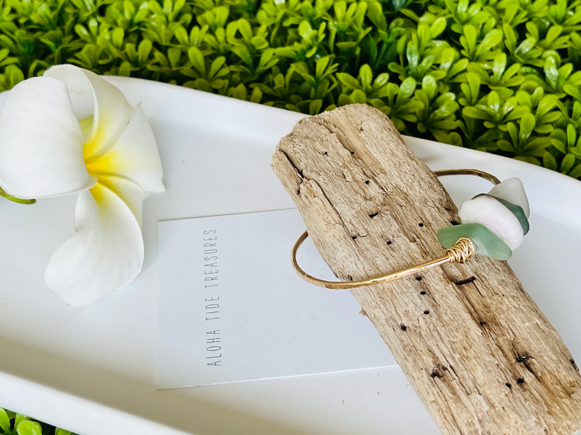 14K Gold-filled bangle features beautiful Hawaiian shells found on the island of Oahu, Hawaii.