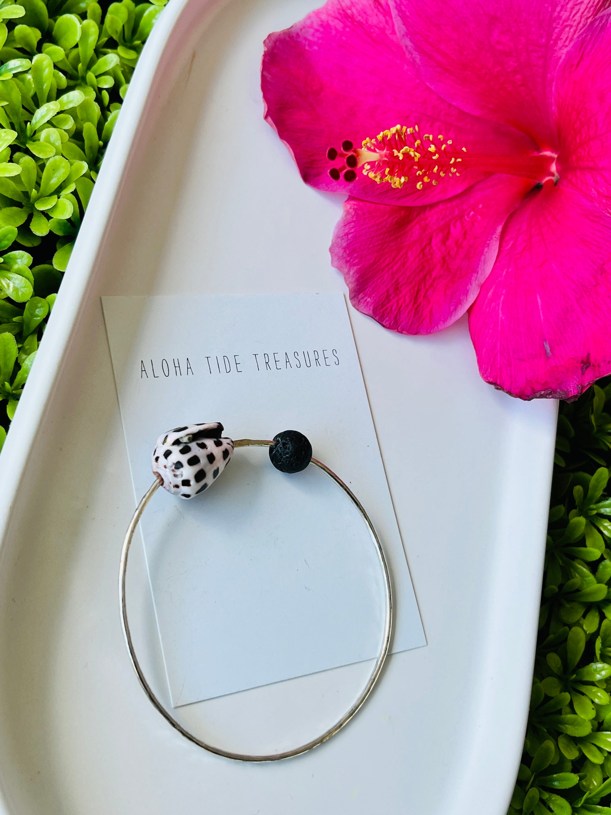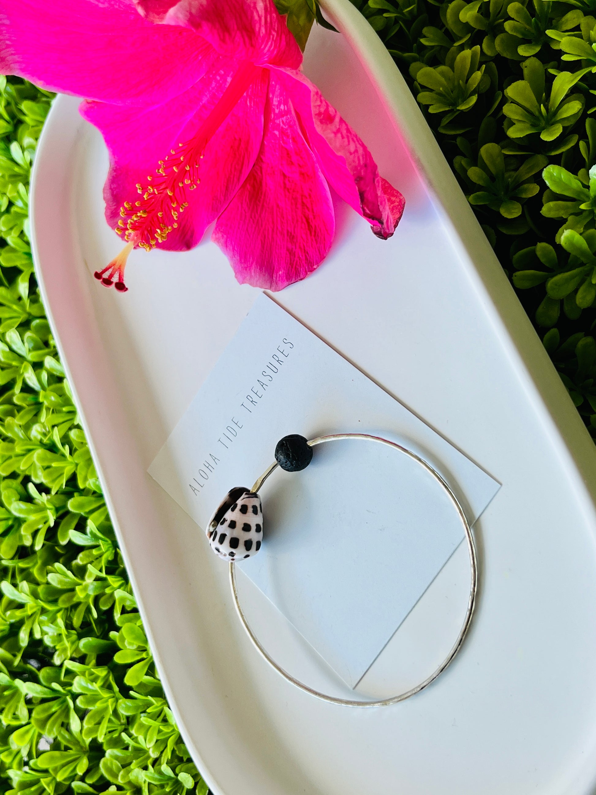 This handmade Sterling Silver bangle features a beautiful Hebrew shell handpicked by myself on the island of Oahu, Hawaii!