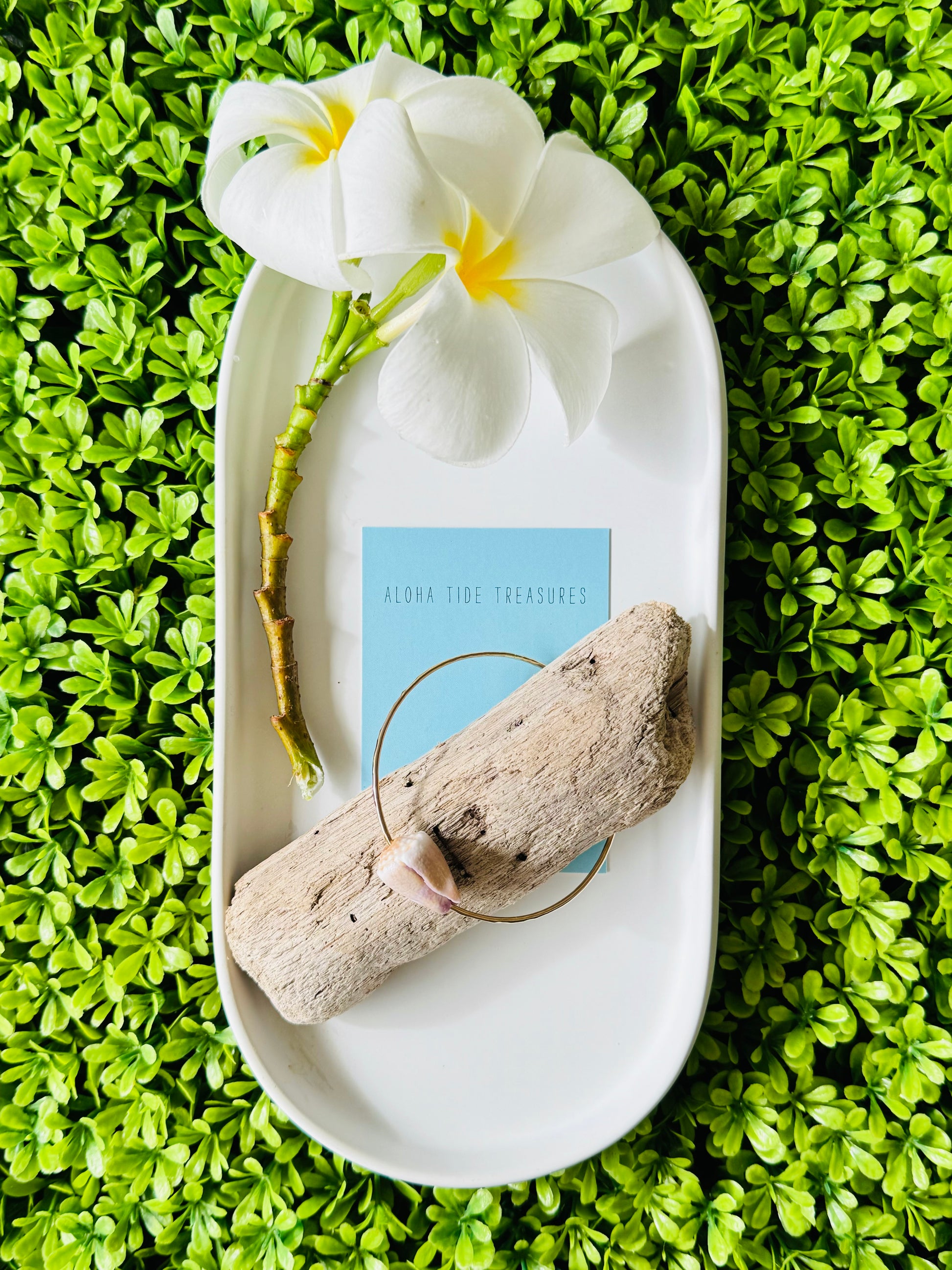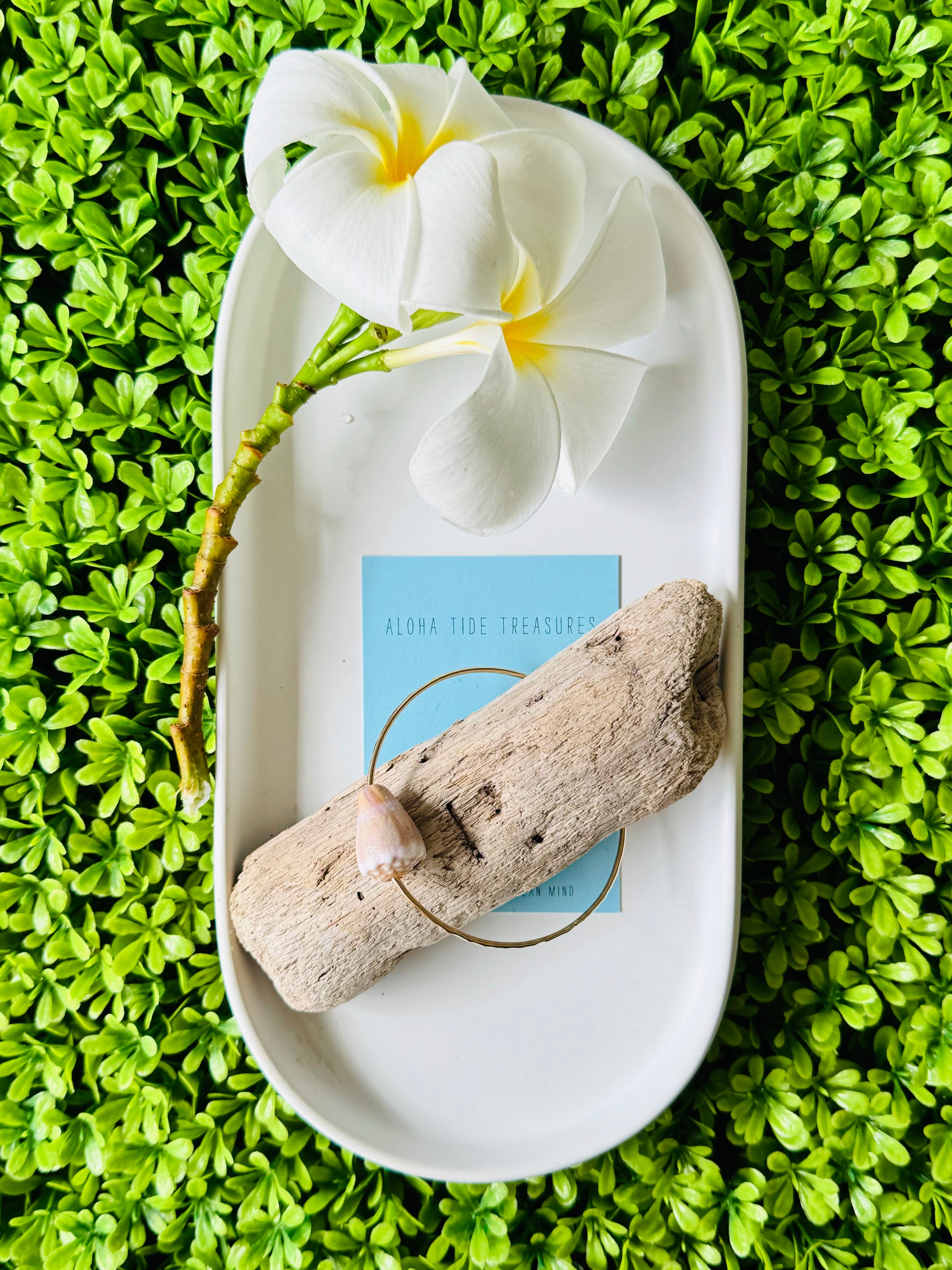 Hawaiian Cone Shell with beautiful crown hung on 14K Gold Filled Bangle measuring 8”. We love these beauties!