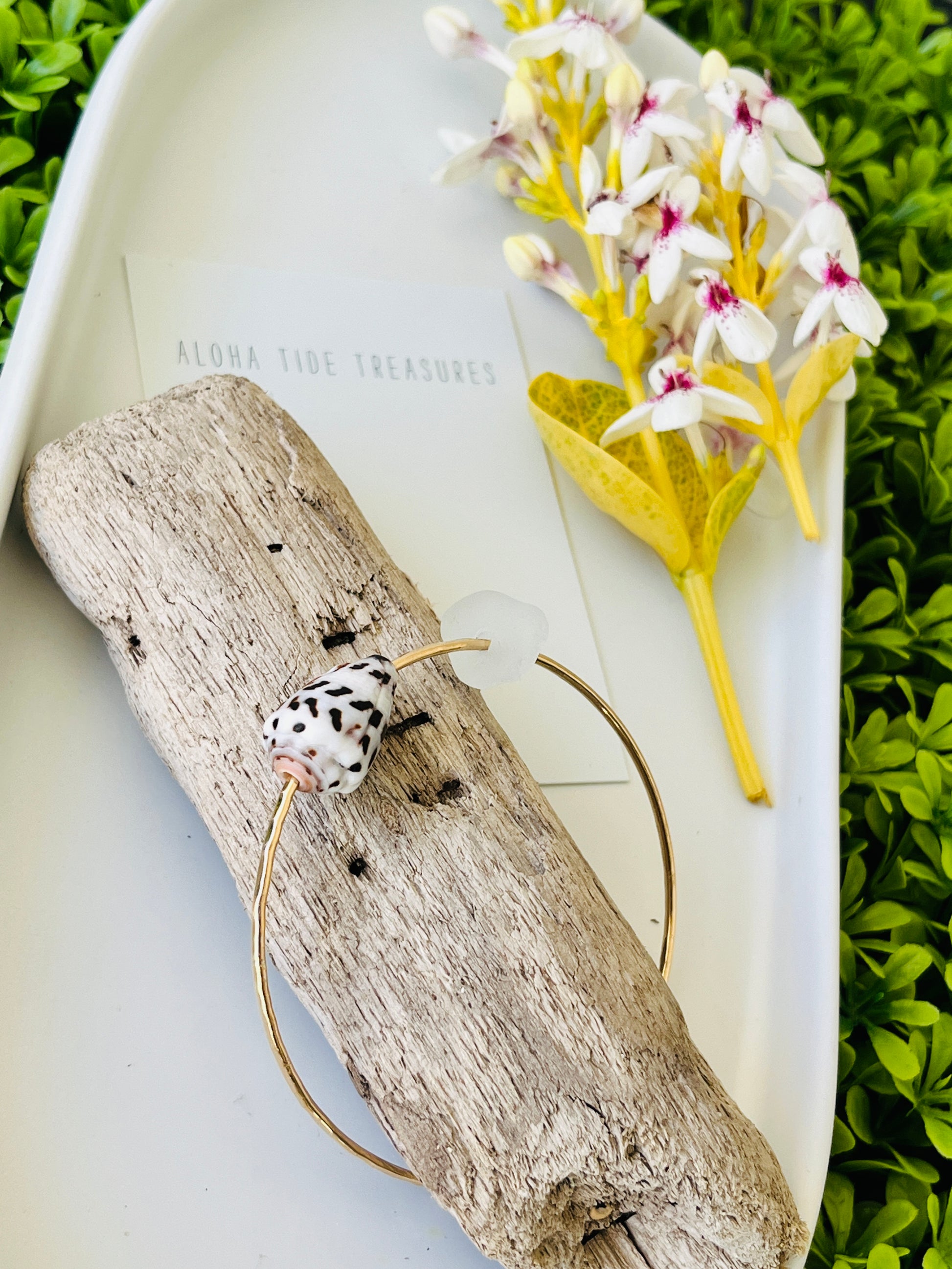 This handmade 14K Gold-filled bangle features beautiful Hawaiian shells and sea glass handpicked by myself on the island of Oahu, Hawaii. Sea glass represents renewal and healing! #mauistrong