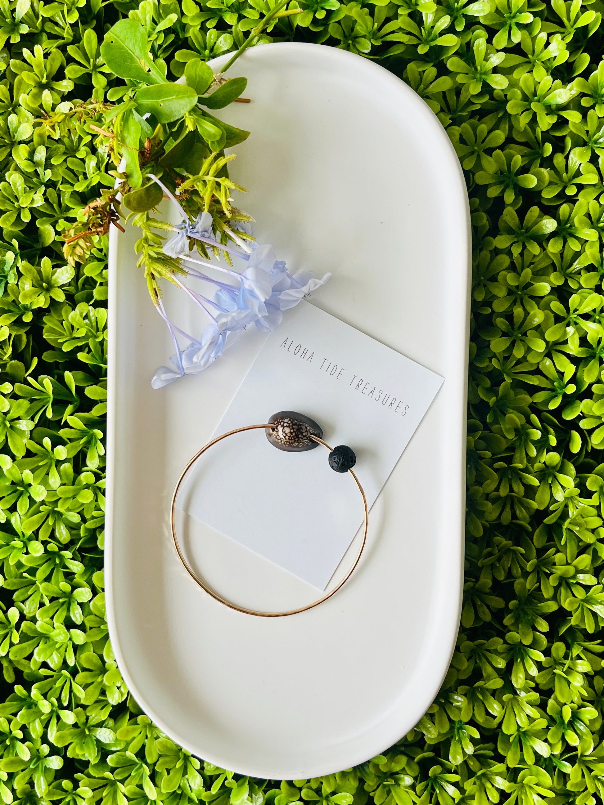 This handmade 14K Gold-filled bangle was custom made for Kayla with her Cowrie Shell and a lava stone bead!