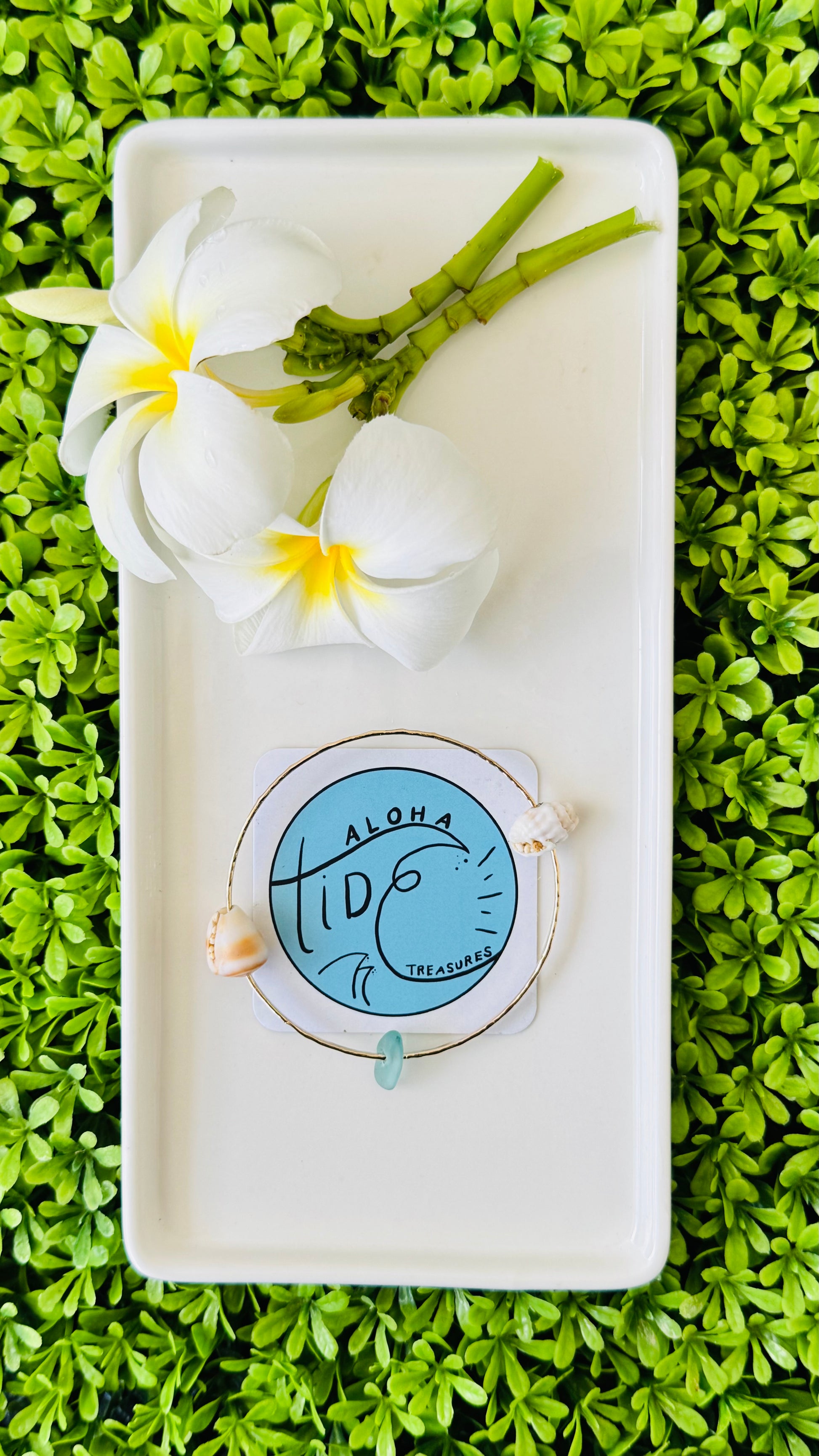 Tiffany any asked us to create a 14K Gold Filled bangle with these beauties! Love them together! That blue Seaglass makes it! Thanks so much!