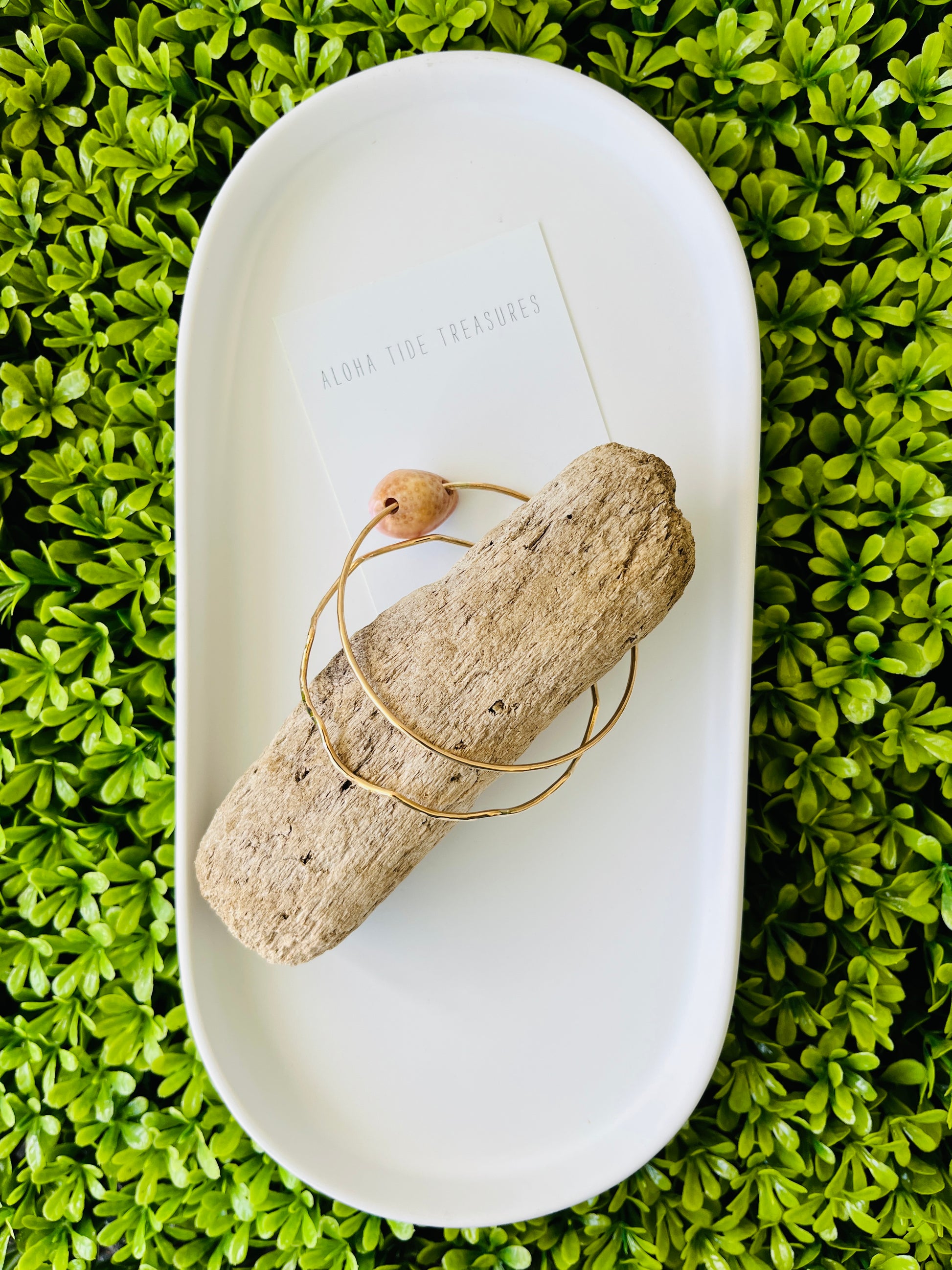 This handmade 14K Gold-filled bangle features beautiful Hawaiian shells found on the island of Oahu, Hawaii.