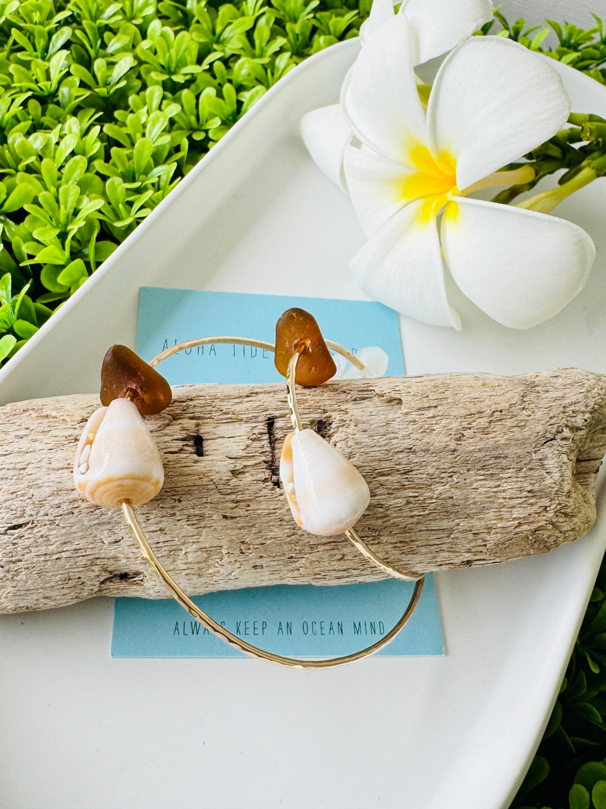 Teresa asked us to create a matching bangle set for her sister and niece! She wanted these cream colored cone shells with matching seaglass! Love how precious these came out!