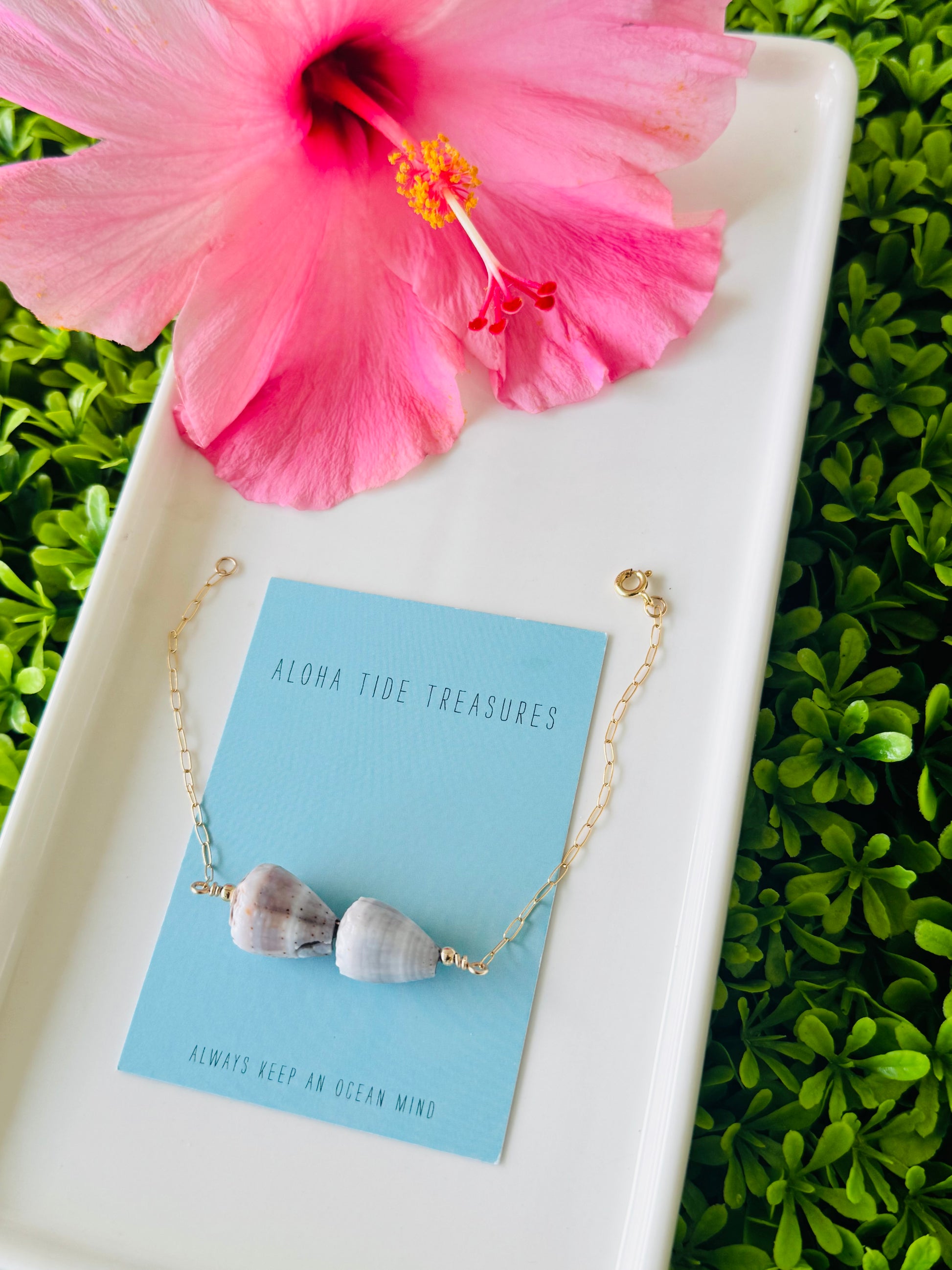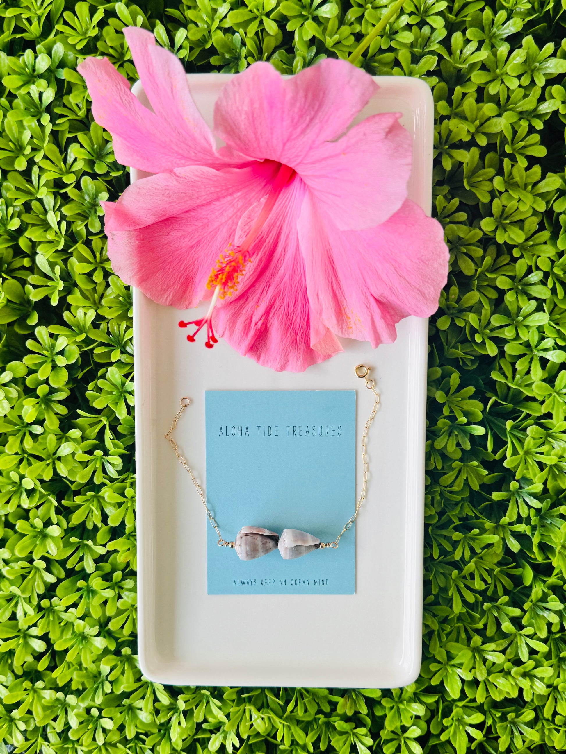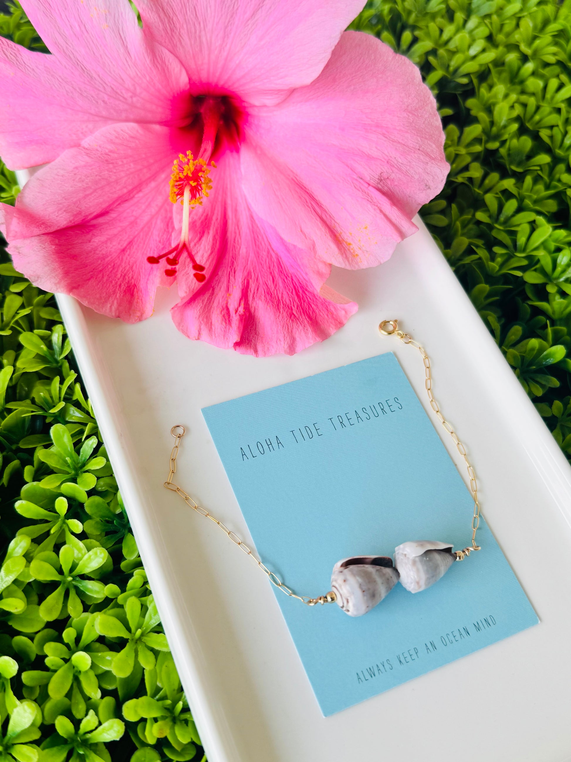 Ms Dee asked us to create a 14K Gold Filled bracelet for her! She found these 2 Cone Shells here in Hawaii and dropped them off for her vision! Here they are on a bracelet measuring 8”! Thank you for trusting us!
