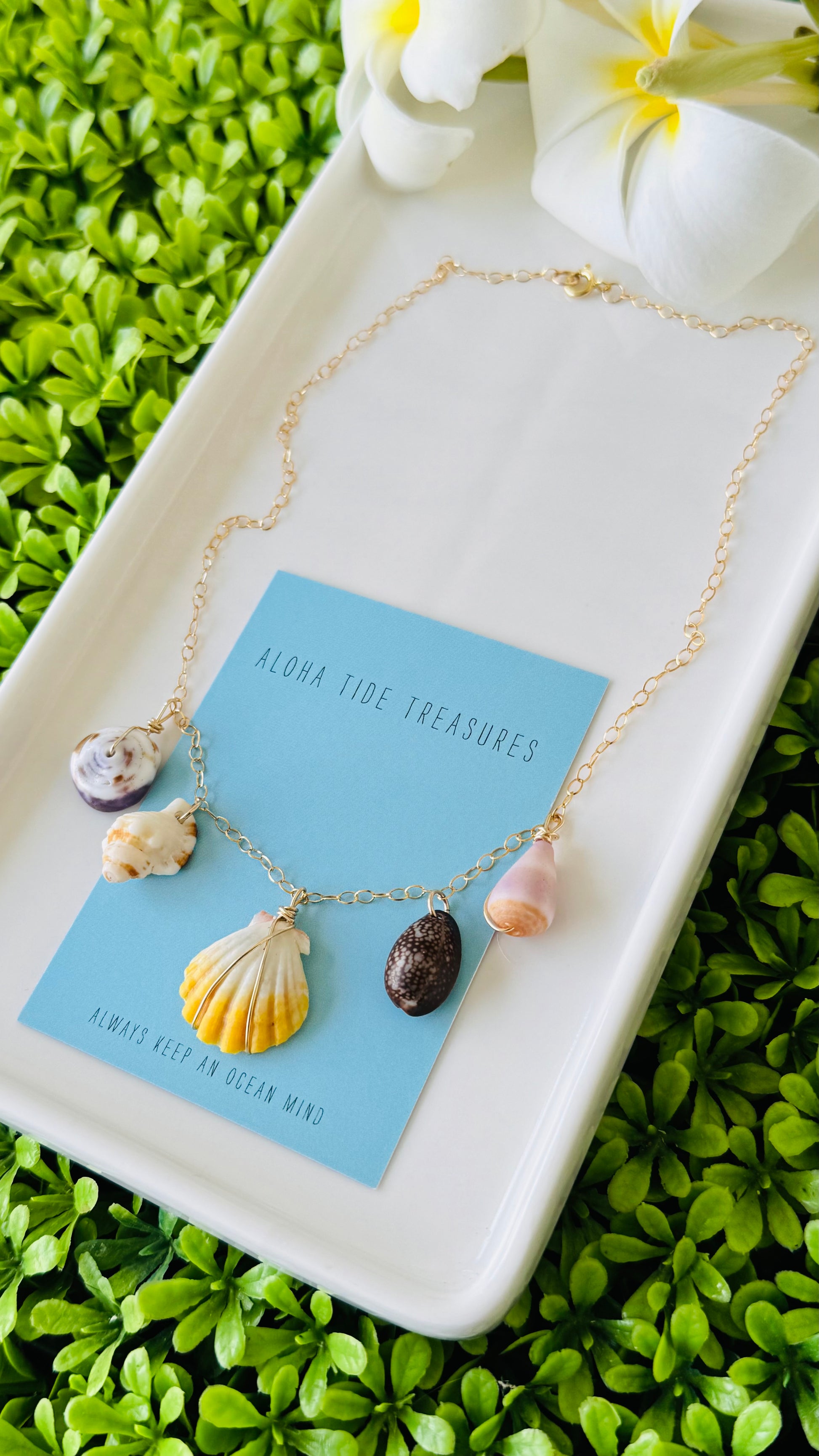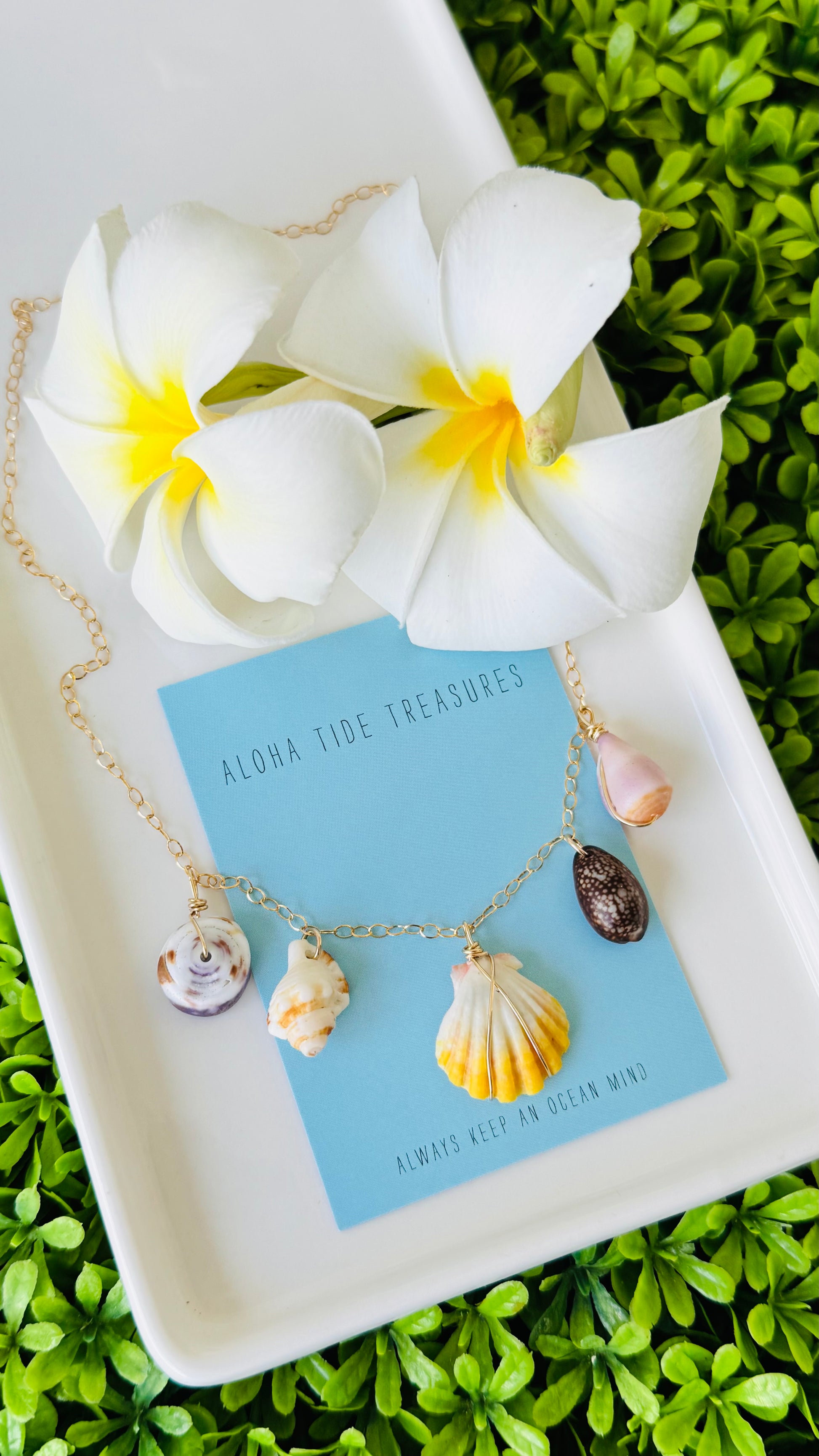 Our good friend Angel asked us to create her daughter a 14K Gold Filled Sunrise Dangle necklace featuring other Hawaiian Shells dangling. We hope she enjoys this as much as we did making it!