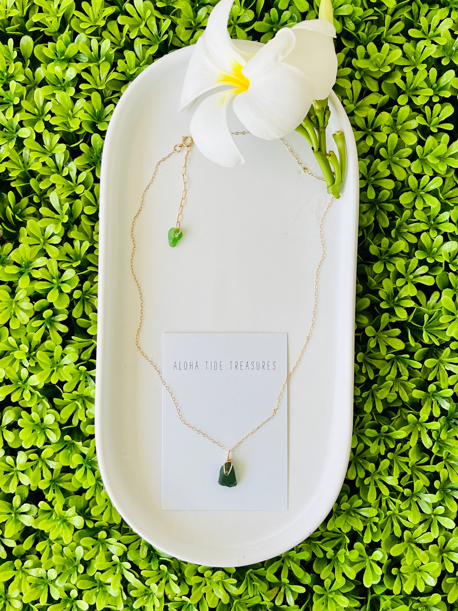 14K GF Green Seaglass Necklace 17” - Stephanie