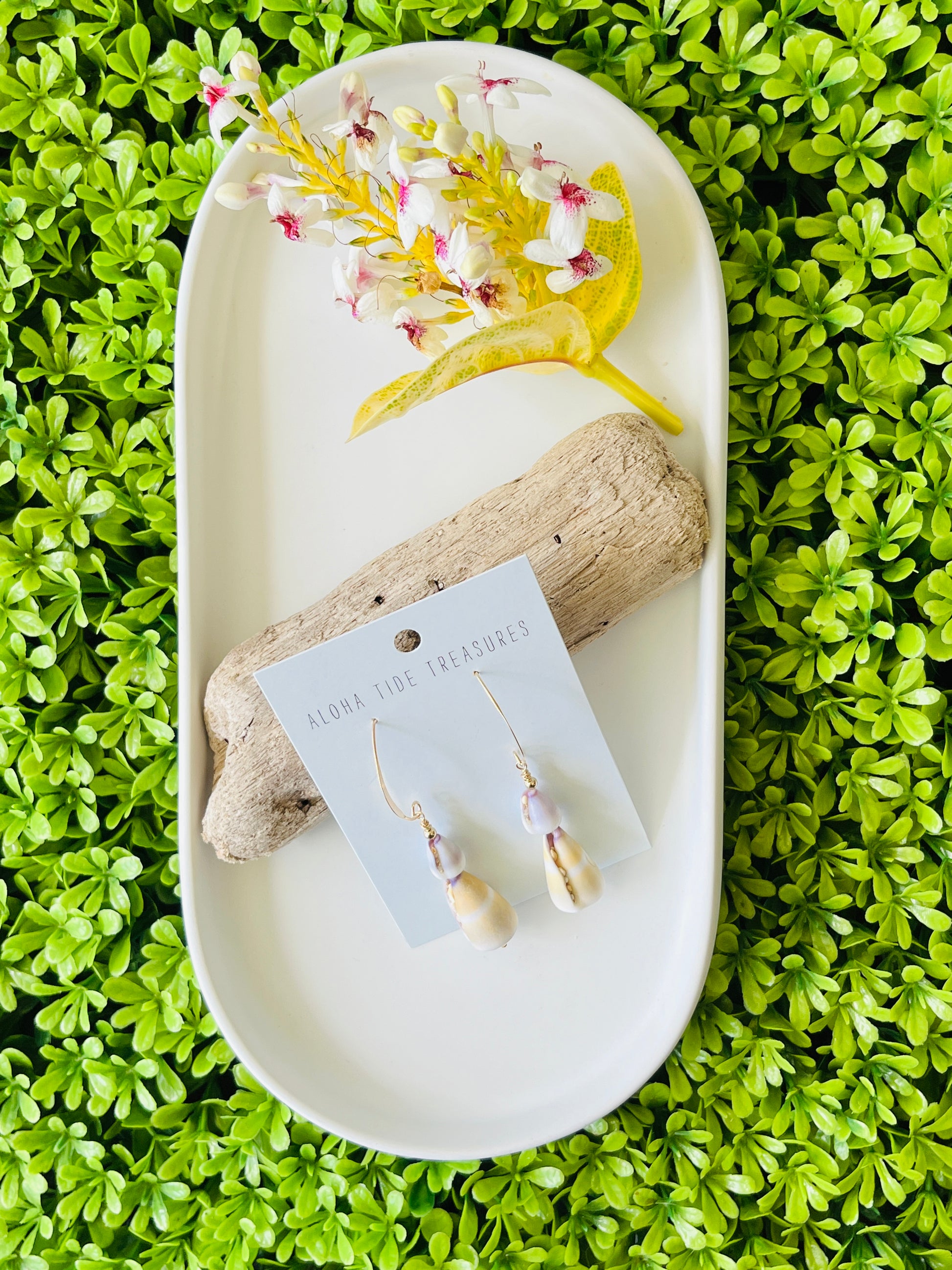 Crafted this beautiful pair of Hawaiian Cone Shell Stacked earrings hanging on 14K Gold Filled wire and earrings!