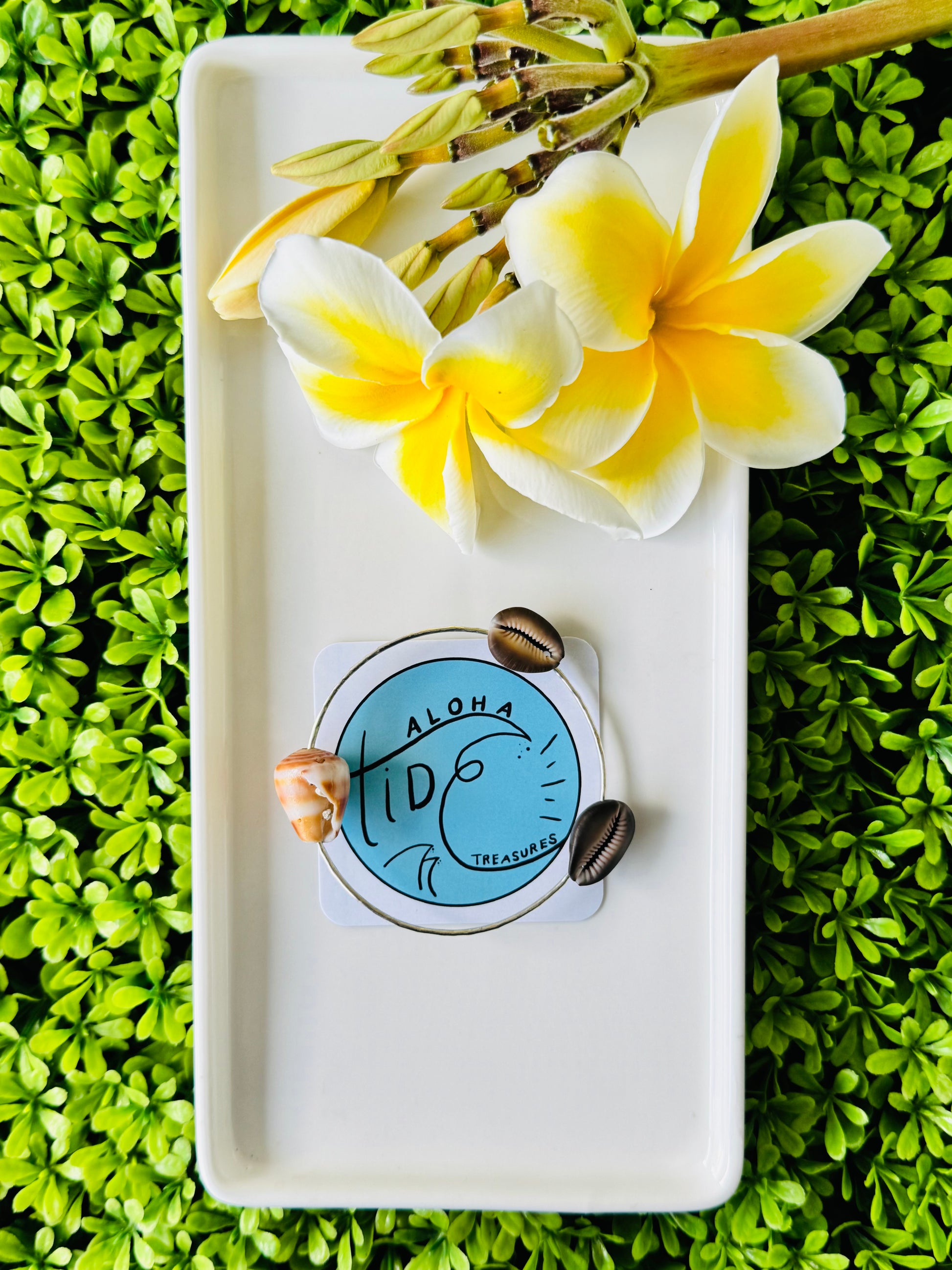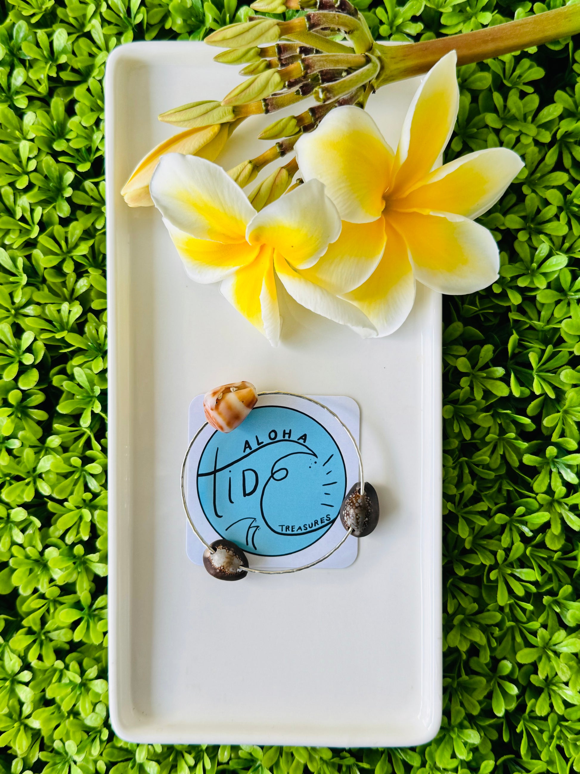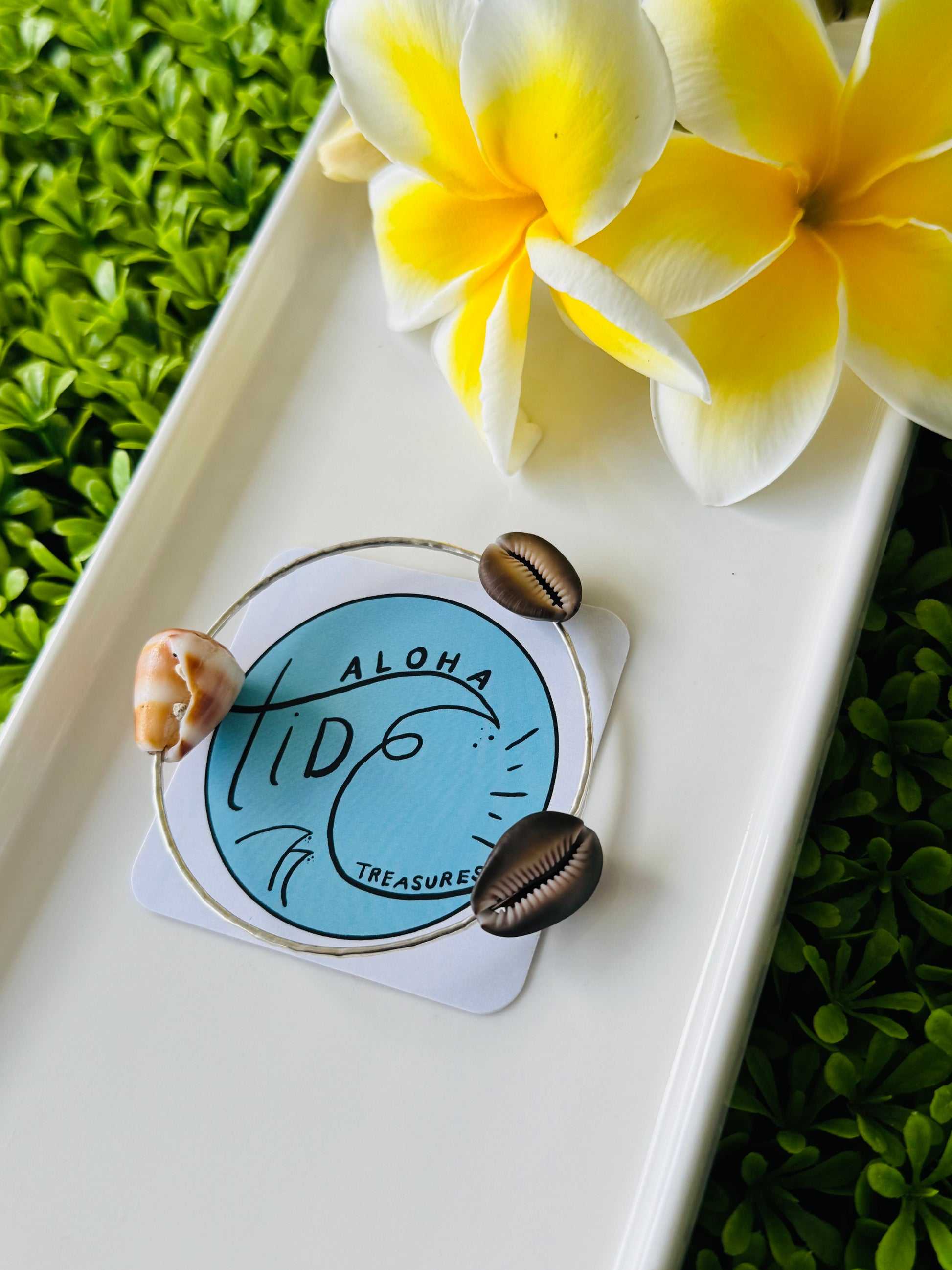 This was Bree’s other beauty. Here’s her 2 Cowries and a Cone Shell drilled and hung on a 14GA Sterling Silver bangle! Hope you enjoy!