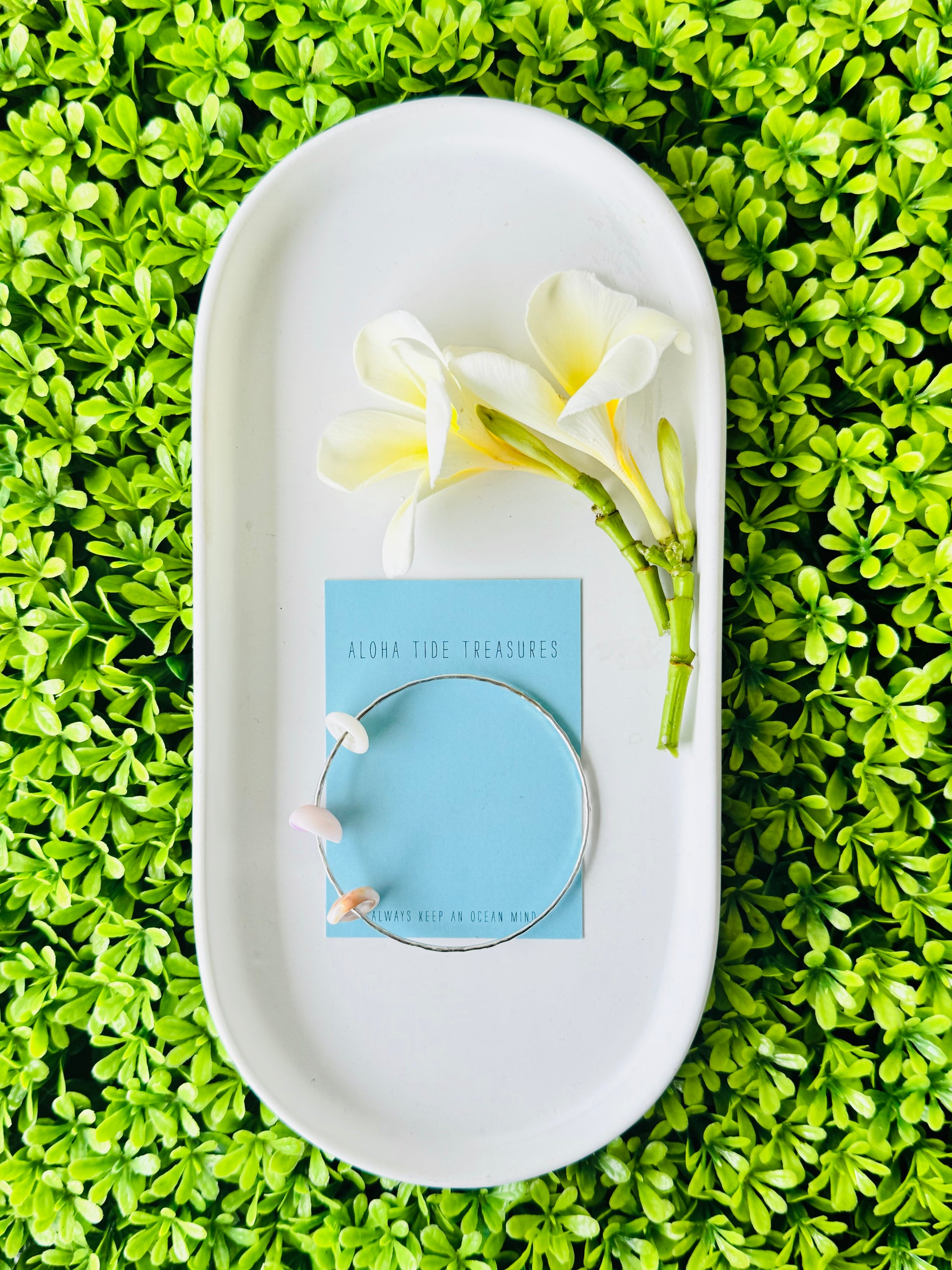 Another beautiful Sterling Silver bangle featuring a 3 unique Hawaiian Puka Shells measuring 8”!