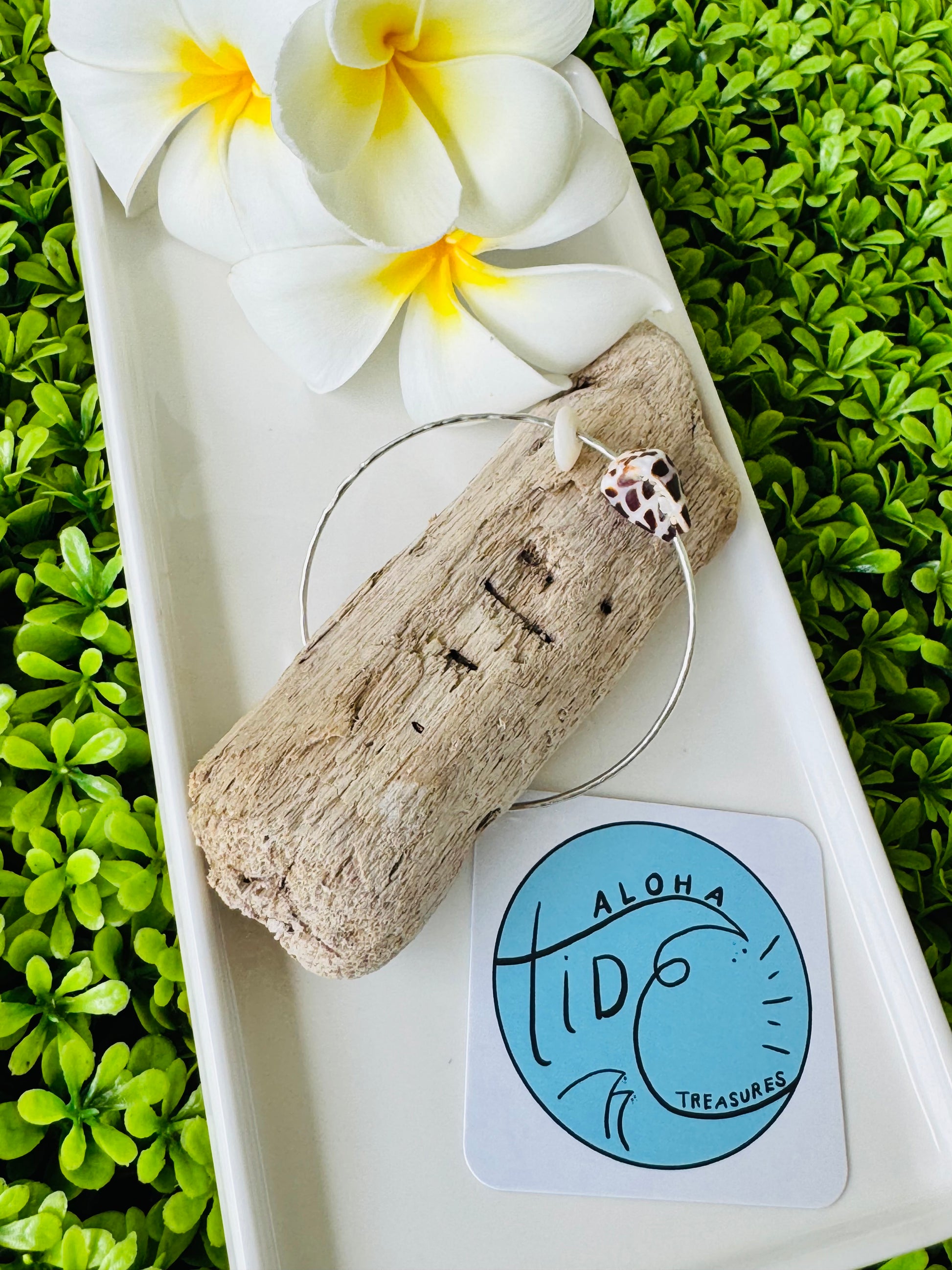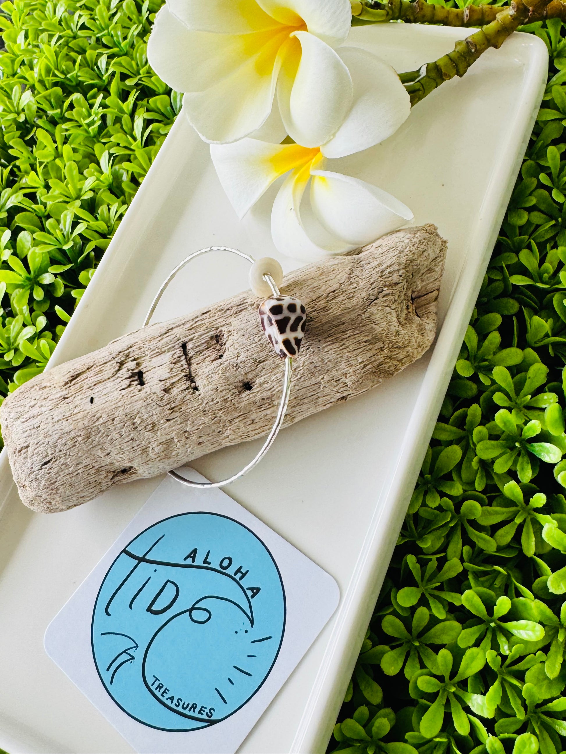 Another beautiful Sterling Silver bangle featuring a Hawaiian Hebrew Shell and a White Puka Shell measuring 8”! These are quite literally my favorite!