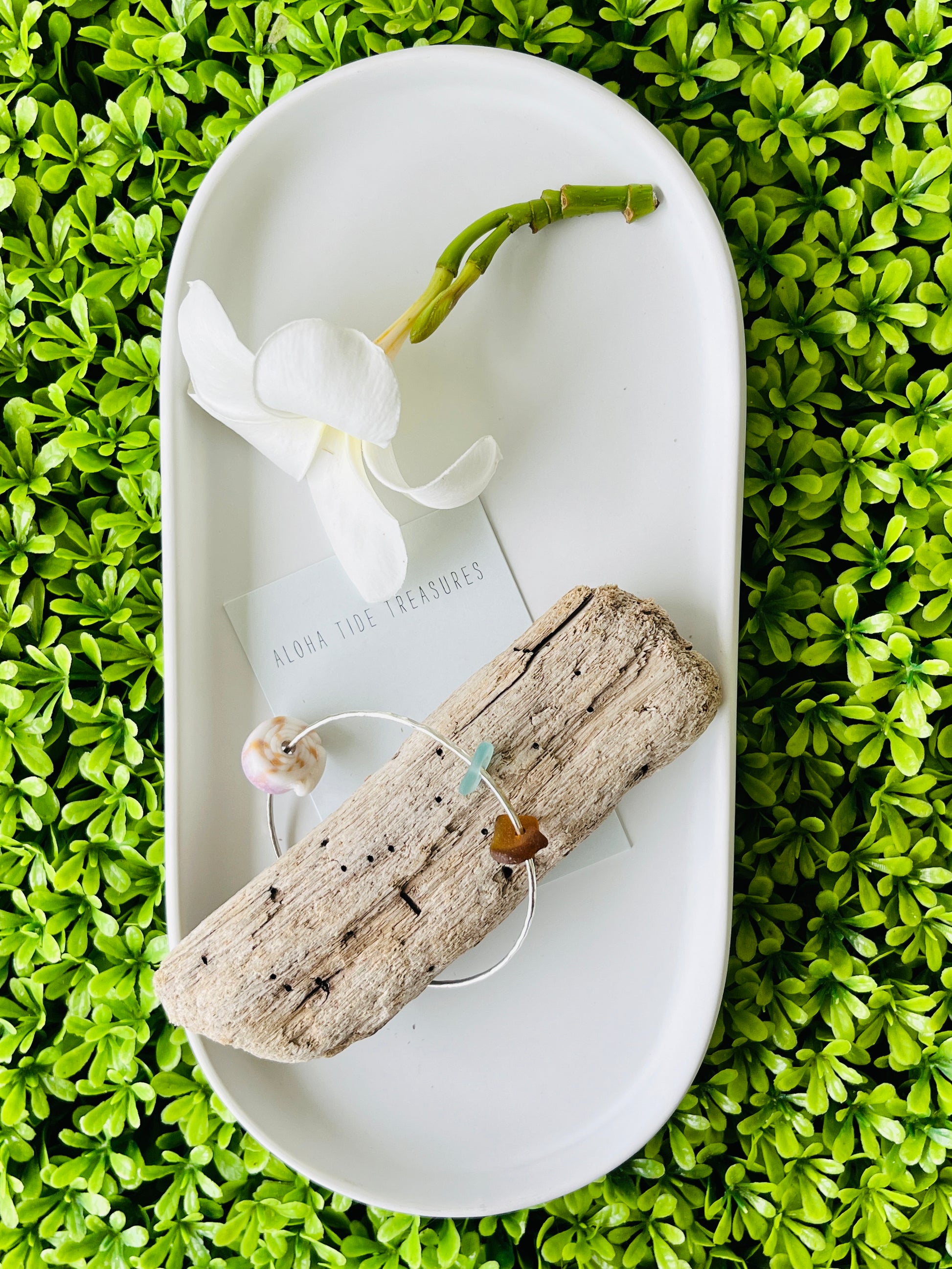 This handmade Sterling Silver bangle features a beautiful Hawaiian puka shell and sea glass handpicked by myself on the island of Oahu, Hawaii!