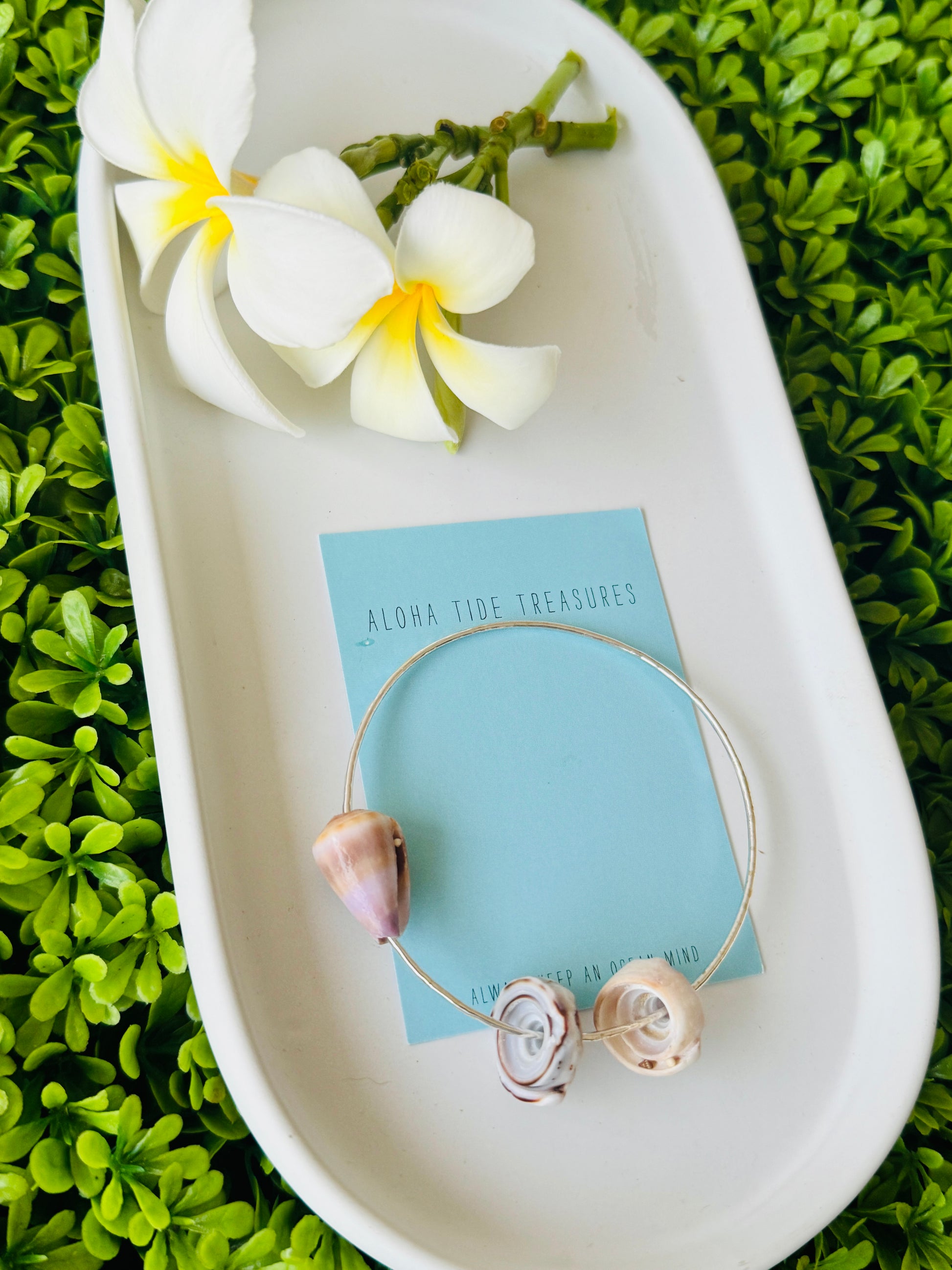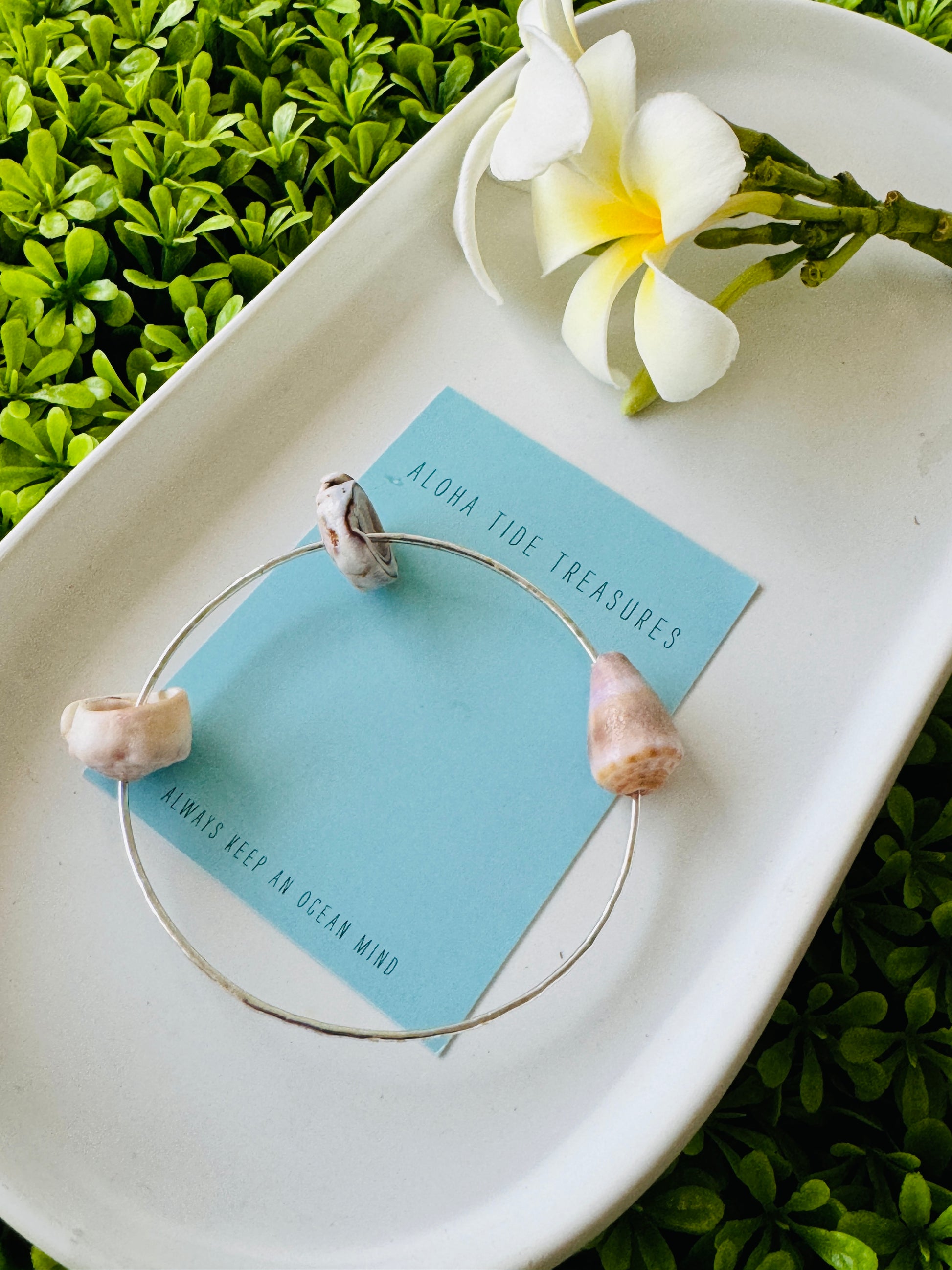 Our new friend and customer Jenny asked for a Sterling Silver bangle with these shells she picked out on them! We love them together! Thanks Jenny!