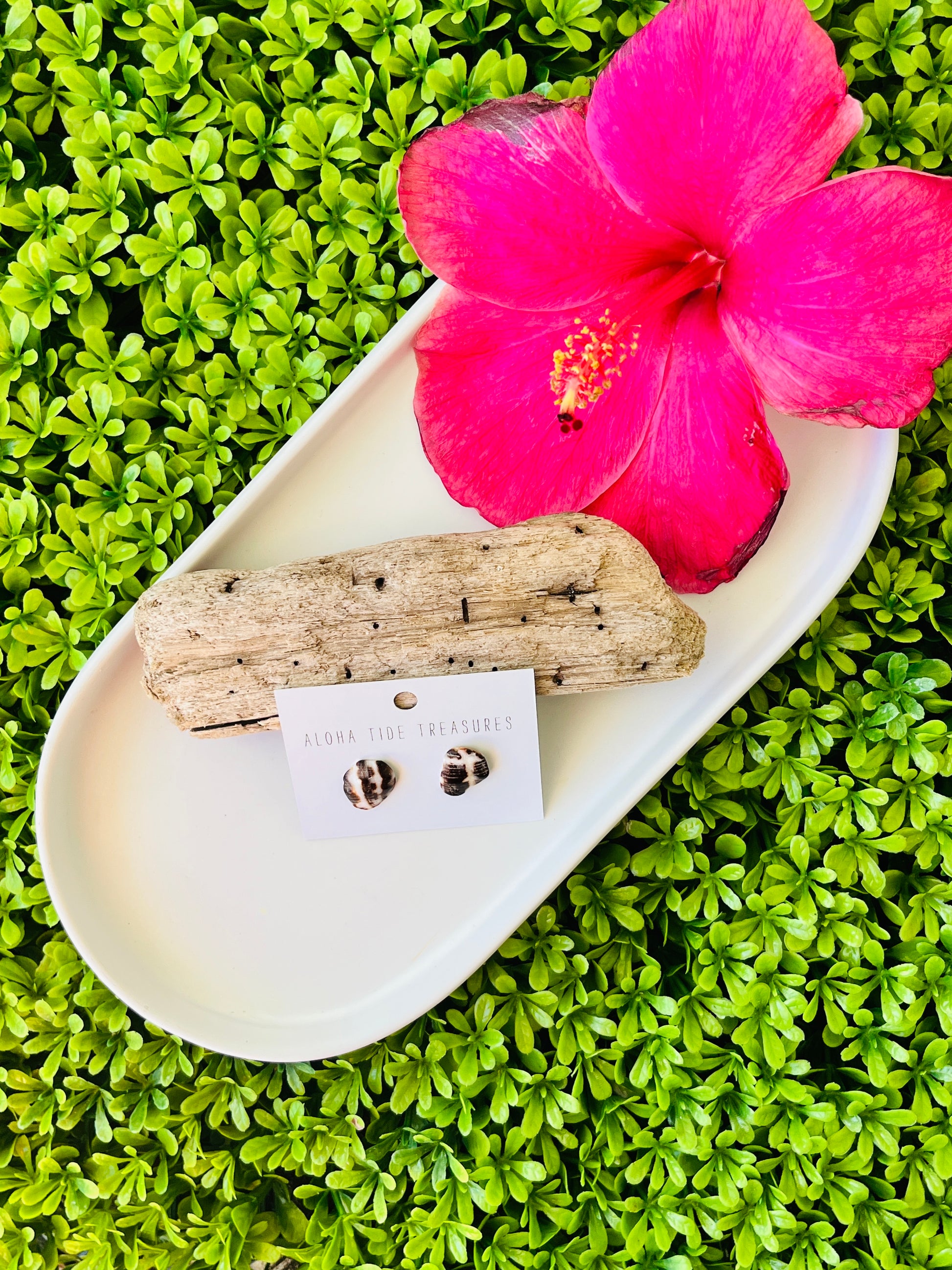 Locally found Hawaiian Cone shells set on 925 Sterling Silver earring studs.