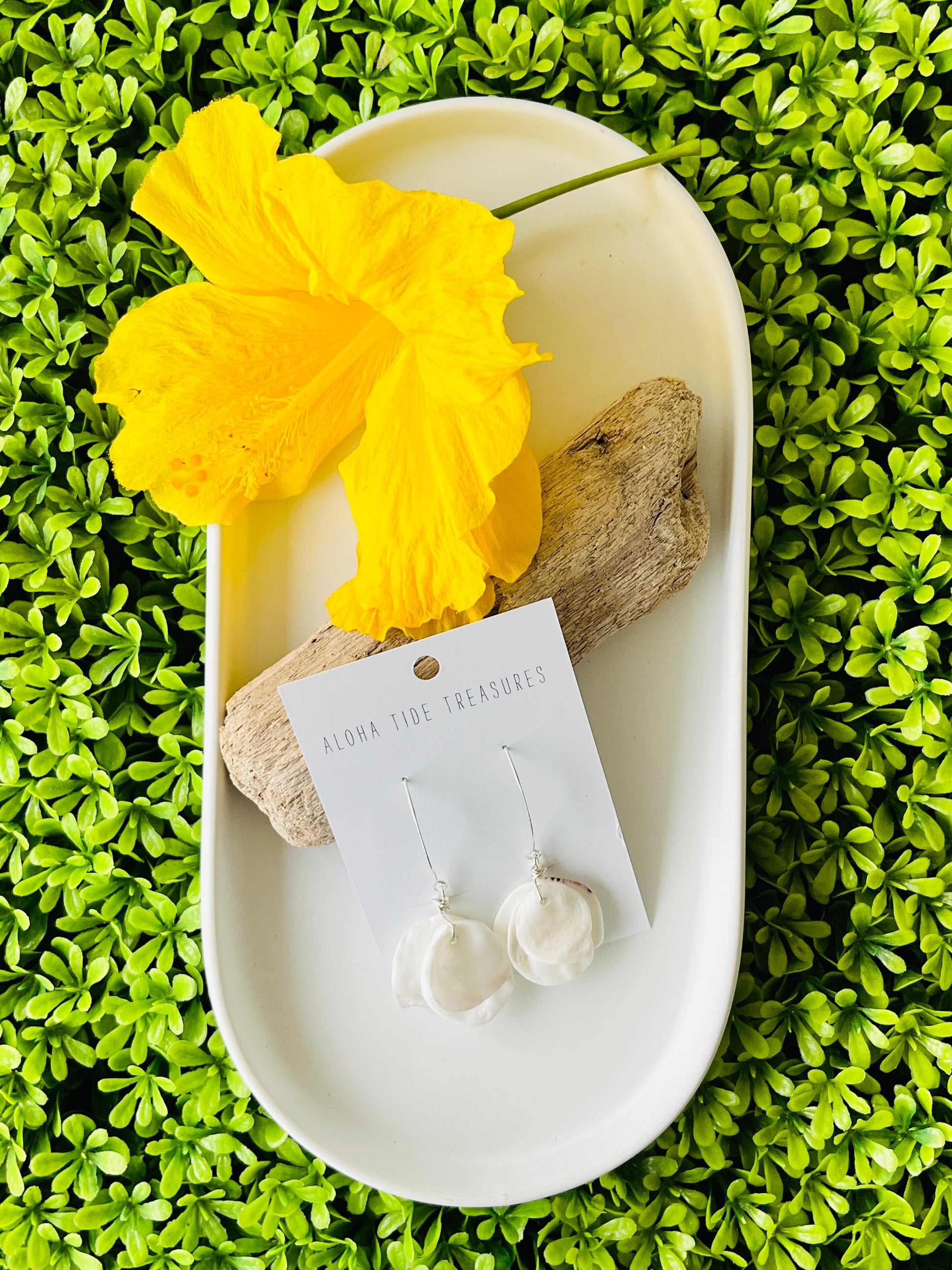 Stacked Dottie Shells dangling from Sterling Silver wrapped Earrings!