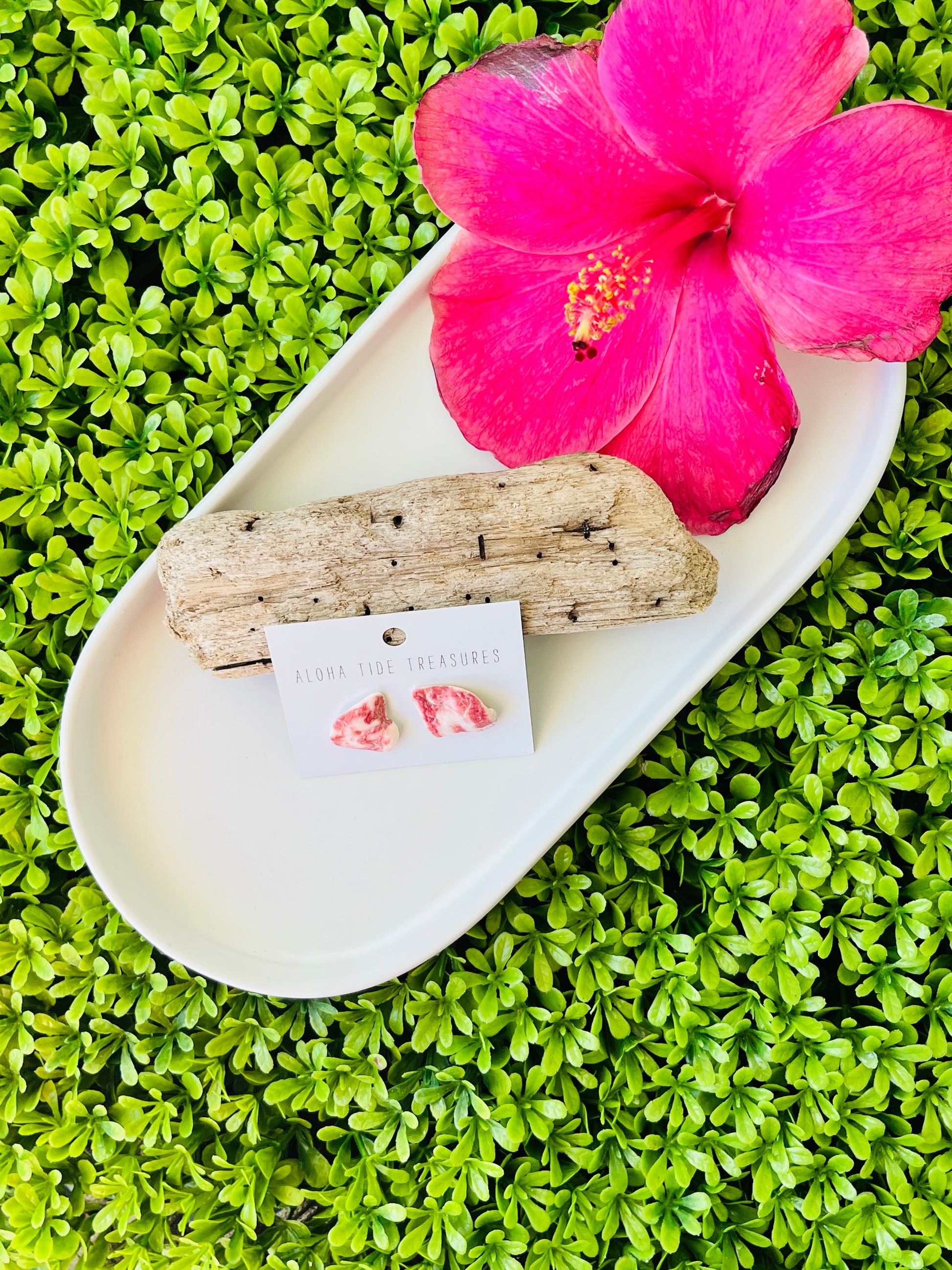 Locally found Hawaiian pink barnacle shells set on 925 Sterling Silver earring studs.