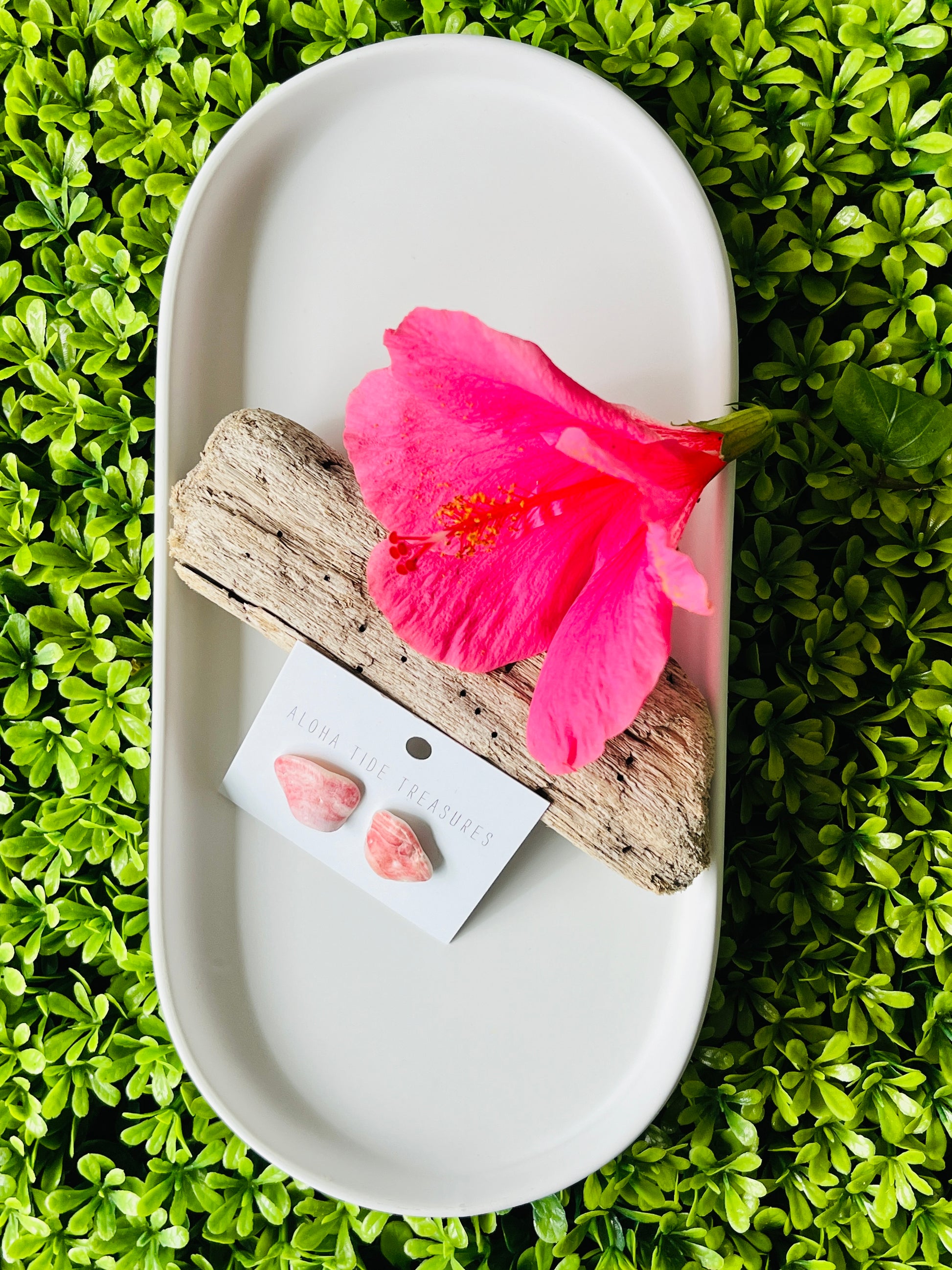 Locally found Hawaiian pink barnacle shells set on 925 Sterling Silver earring studs.
