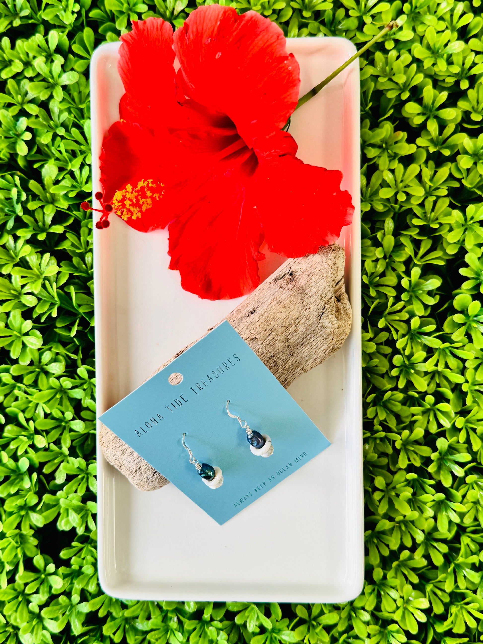 Crafted these dangle earrings featuring Dainty Pukas and Freshwater Pearls hanging from Sterling Silver Earrings! Love how these fall!