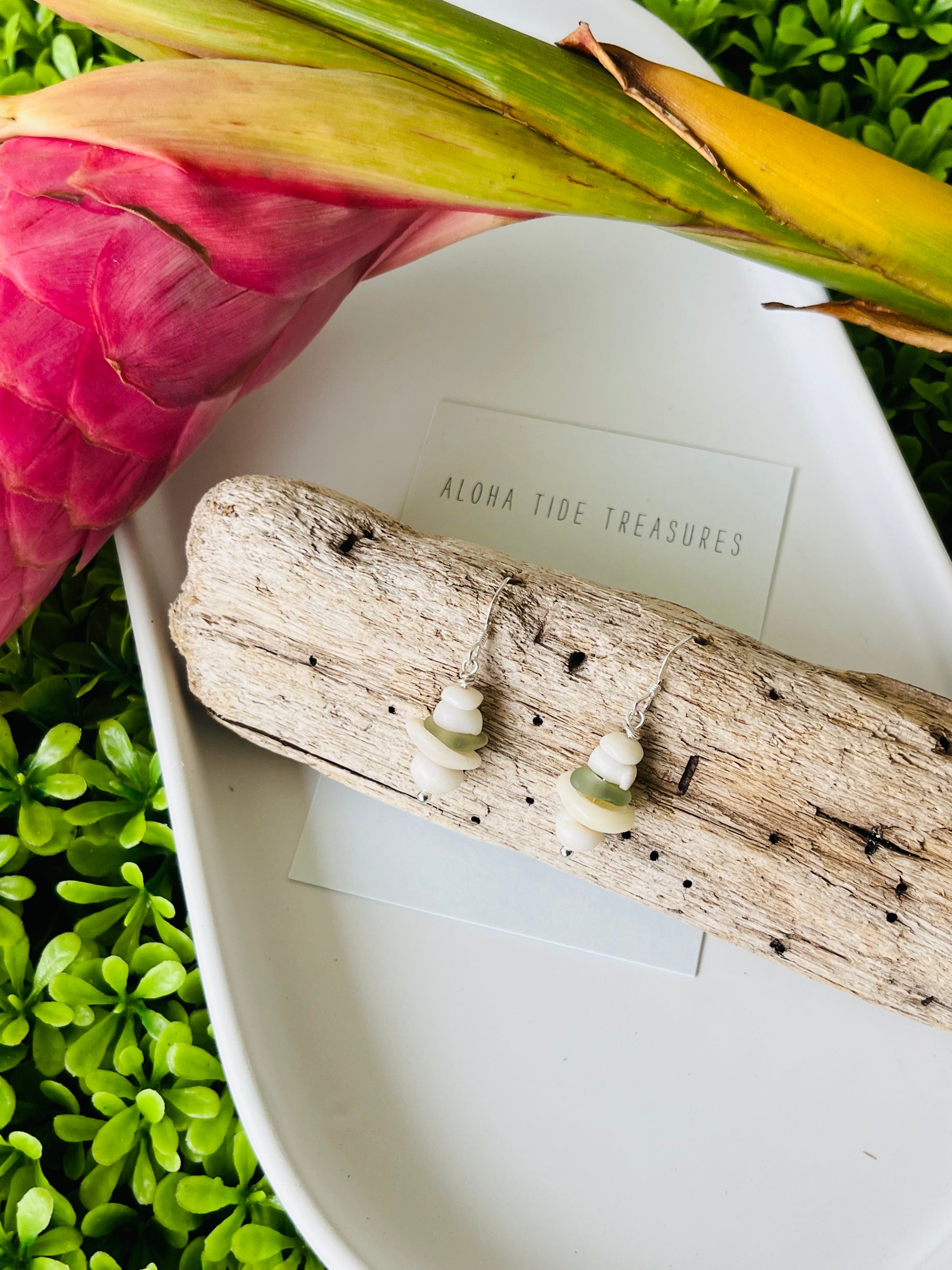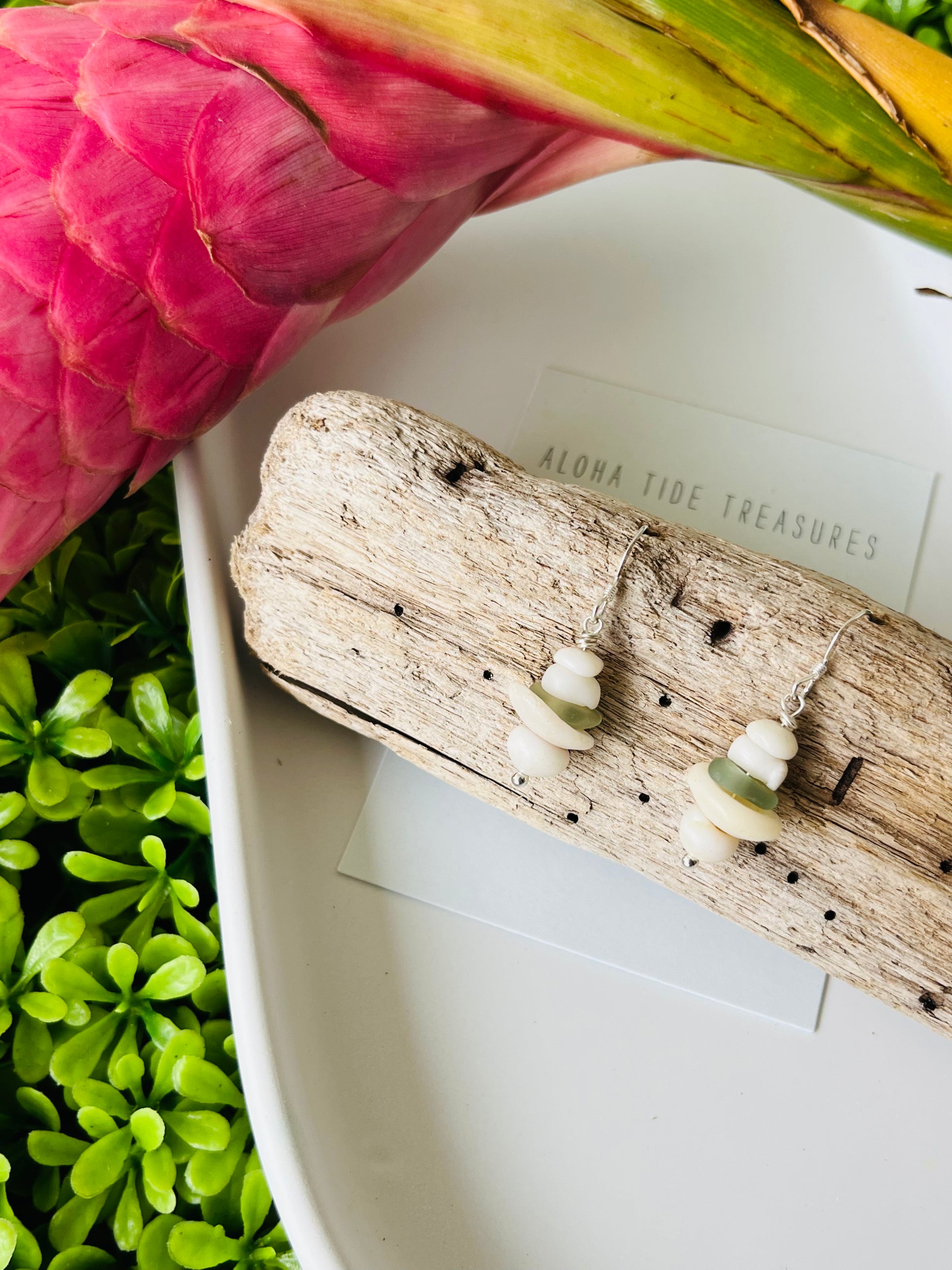 Pukas & bluish green sea glass hand-picked from the beaches of Hawaii hung on Sterling Silver Earrings!