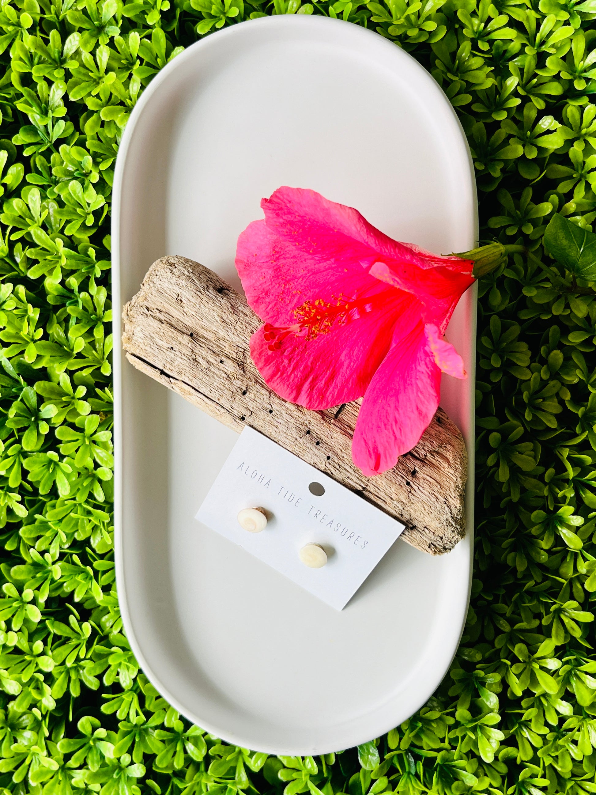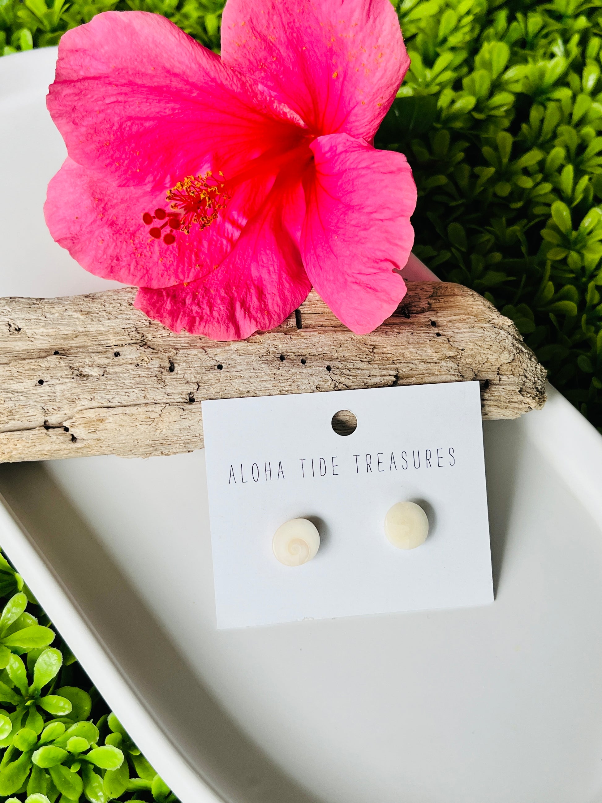 Locally found Hawaiian Shiva’s Eye Shells set on 925 Sterling Silver earring studs.