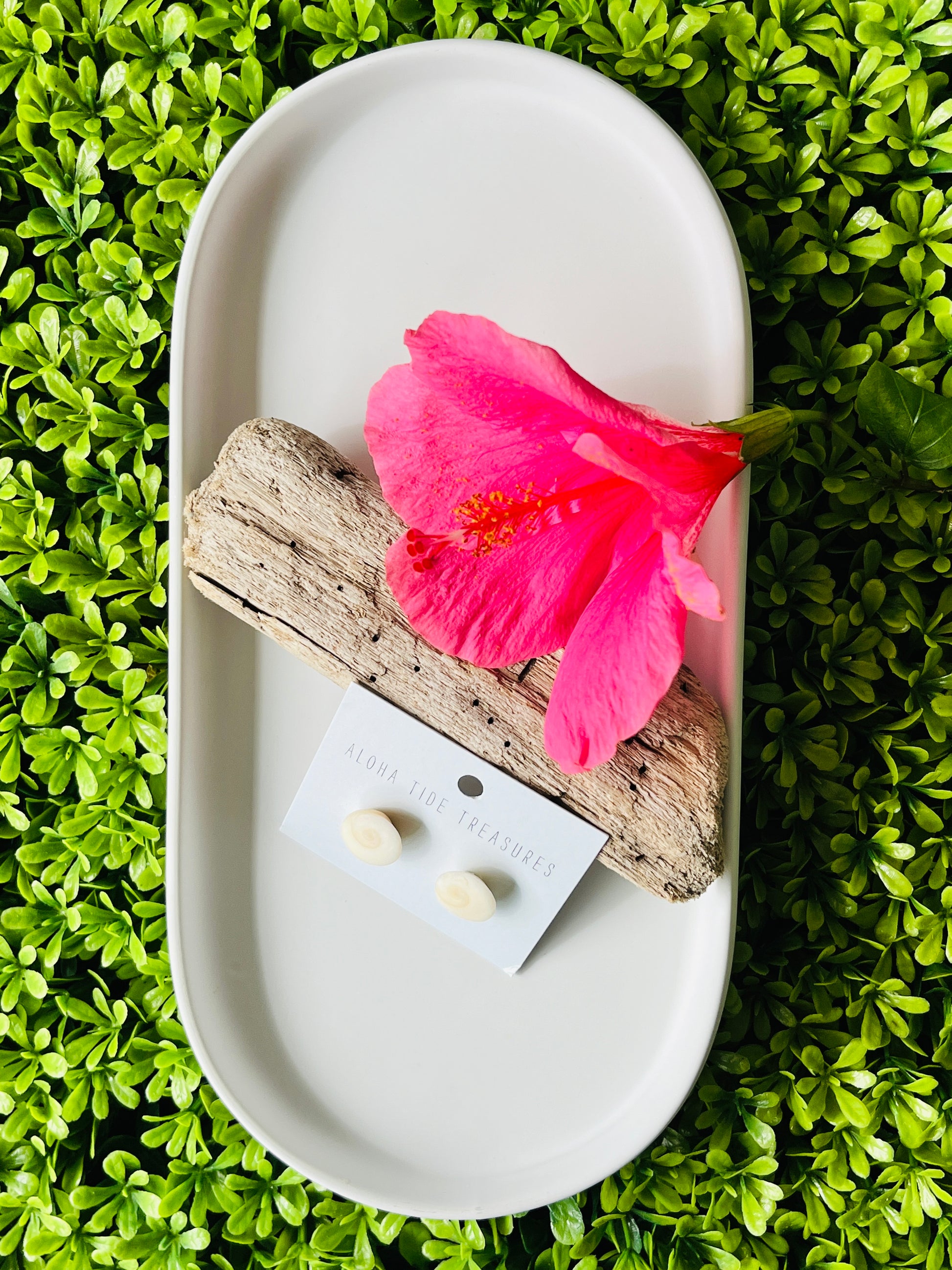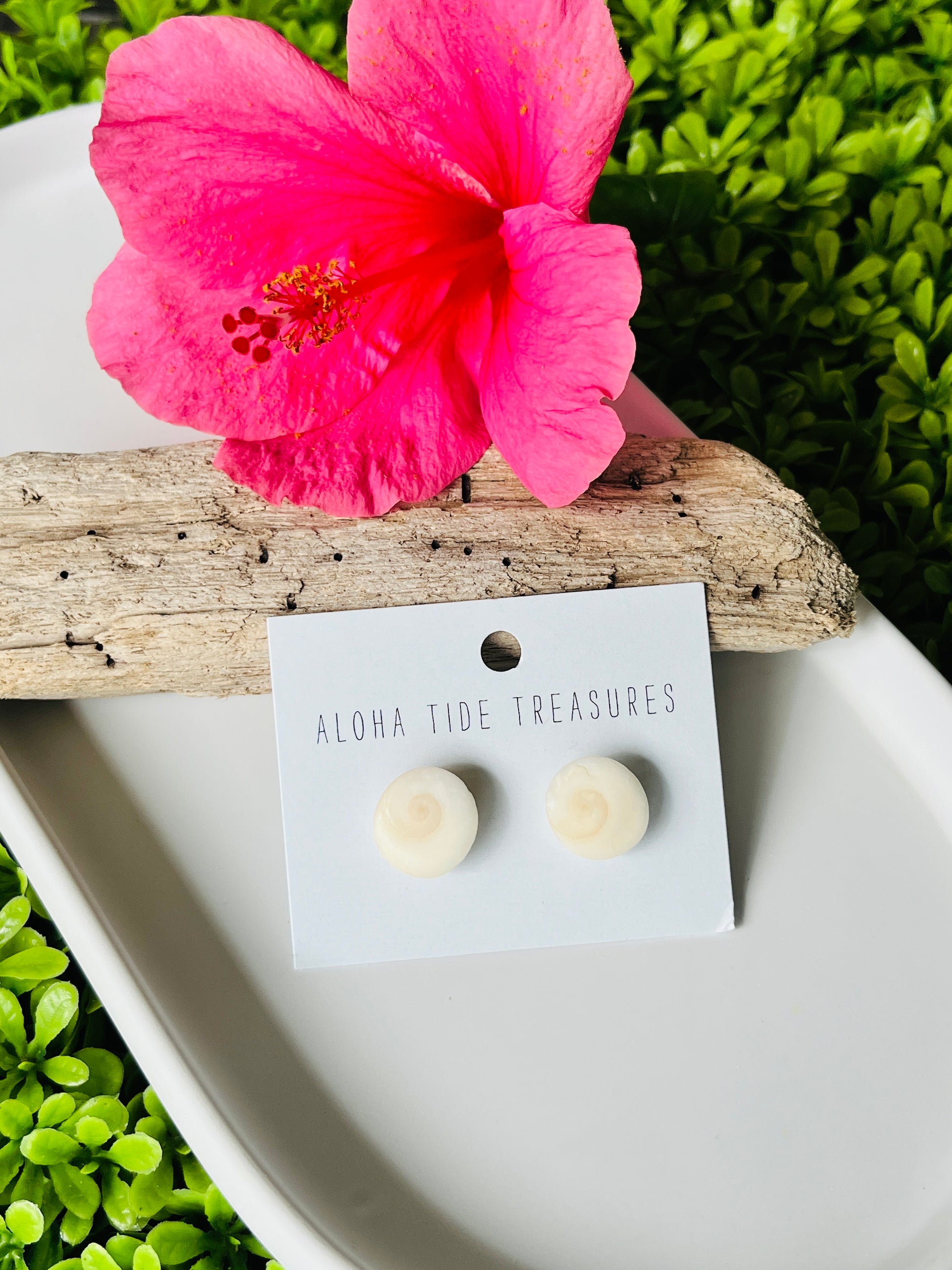 Locally found Hawaiian Shiva’s Eye Shells set on 925 Sterling Silver earring studs.