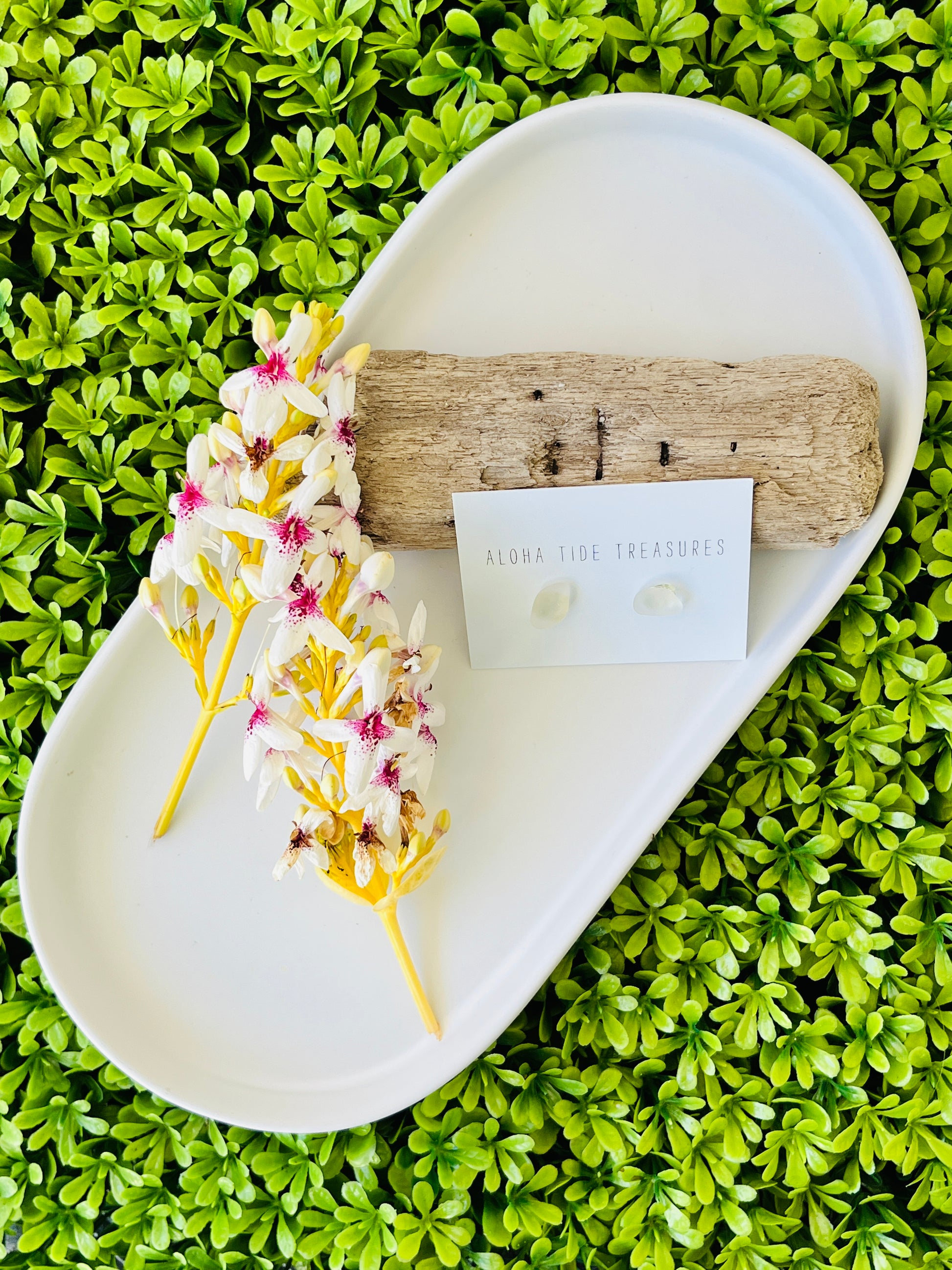 Locally found Hawaiian White Seaglass set on 925 Sterling Silver earring studs.