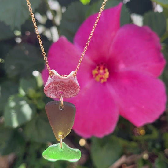 Julia helped us create this Mermaid Necklace featuring Pink Barnacles and Seaglass! Flows and dances on 14K GF chain measuring 16”!